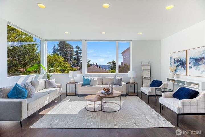Significant price improvement for this beautifully landscaped retreat in Seward Park! Discover your urban oasis in this meticulously crafted modern home, where style, sophistication, and functionality converge. Sun-drenched living spaces span every floor, complemented by an open gourmet kitchen and a grand master suite. Enjoy the convenience of an oversized two-car garage, a covered backyard patio, a private master deck offering views of Lake Washington, and a fully fenced turfed yard. Close to parks, light rail, and shopping. This isn't just a home; it's your landing pad in highly desired Seward Park!