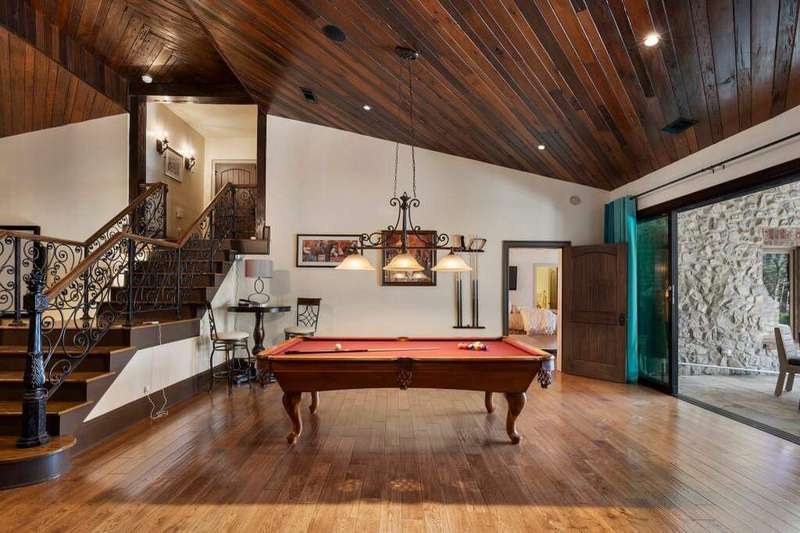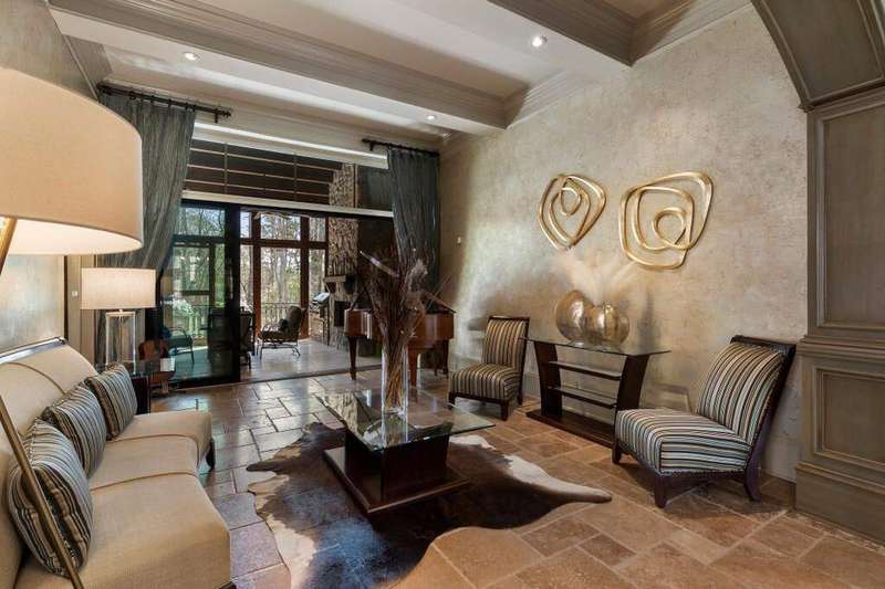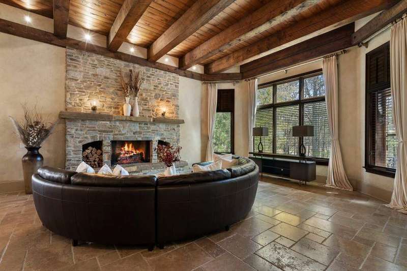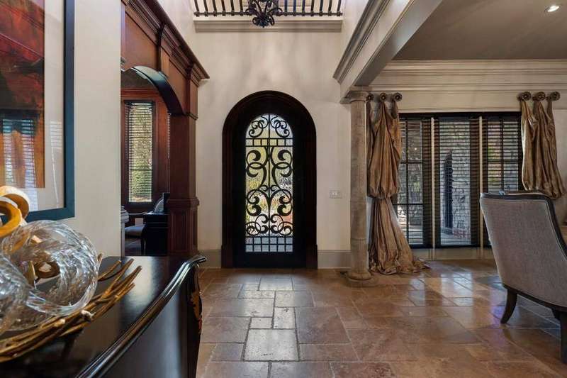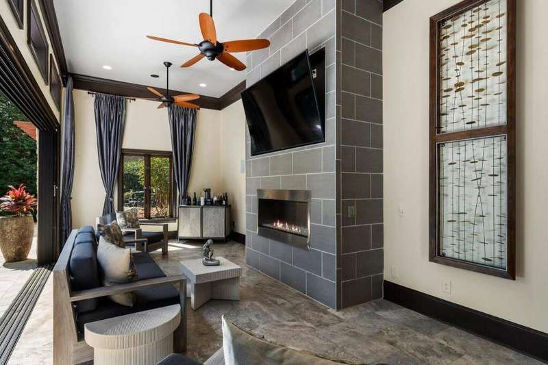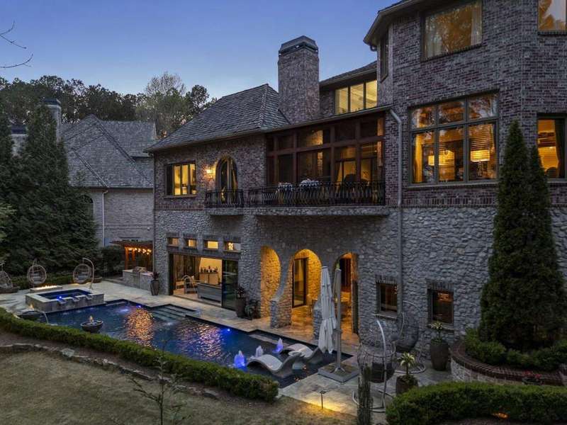 This exceptional European-inspired estate seamlessly blends elegance and functionality. Upon entry, you're welcomed by soaring ceilings, grand stone columns, and a balcony overlooking the spacious foyer. The fireside gentlemen's study features rich wood paneling, custom bookshelves, and a hidden storage room, while the formal dining room offers a perfect space for hosting dinner parties. The formal living room opens to a screened porch through floor-to-ceiling nano glass sliding doors, creating an effortless connection between indoor and outdoor spaces. The porch is equipped with a built-in gas grill and stone fireplace, ideal for year-round enjoyment. The expansive kitchen is a culinary dream, outfitted with Wolf appliances, including two dishwashers, three ovens, a warming drawer, and a large farm sink. It seamlessly connects to the breakfast area and family room, which includes a stone fireplace and a custom wooden bar with wine storage, an ice maker, and a wine fridge.The main-floor primary bedroom offers an indulgent retreat with an oversized fireplace, barrel-vaulted ceiling, and private balcony overlooking the tranquil backyard. The updated en-suite bathroom features a soaking tub, steam shower, dual vanities, and beautiful marble tiling. The walk-in closet is equipped with custom built-ins and an island for additional storage. Upstairs, a bonus room provides versatile space for a media room, play area, or home office. Four spacious bedrooms, each with a private bathroom and walk-in closet, complete the upper level. One oversized bedroom can serve as a secondary primary suite, offering a luxurious en-suite bathroom with marble countertops, a deep soaking tub, and a glass-enclosed shower. The terrace level is an entertainer's paradise. It includes a cozy den with a fully equipped kitchen and a stunning glass wine cellar, a home theater with built-in reclining seats and LED lighting, and a billiards area that opens directly to the back patio. The level also features a sauna and a private guest bedroom with its own bathroom and entry to the backyard. The downstairs back patio features nano sliding doors that open to the pool area, creating a smooth transition between indoor and outdoor living. With a gas fireplace, ceiling fans, and the option to enclose the space for year-round use, the patio is perfect for any season. Adjacent to the patio, a built-in gas grill and stone fire pit area enhance the outdoor living experience. The backyard is a true highlight, featuring a soaking hot tub with a waterfall that flows gently into the pool, pool lighting for evening swims, and a tanning ledge for sunny days. A manicured grassy yard runs parallel to the pool deck, balancing lush greenery with open space. Located at the end of a cul-de-sac in the prestigious gated community of Ardsley Park, this home is as impressive inside as it is outside.This estate provides the perfect combination of comfort, style, and entertainment, making it truly one of a kind.