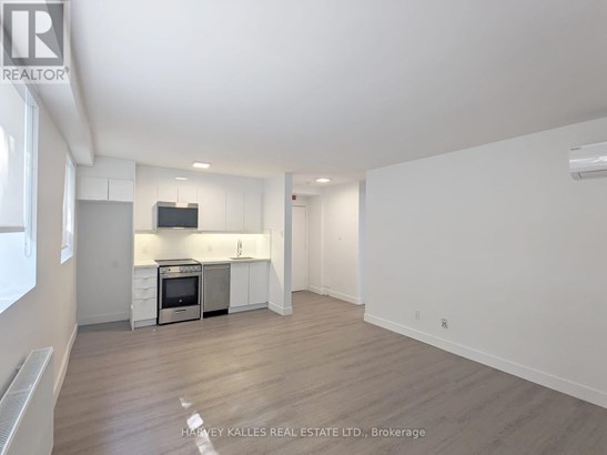 Newly renovated 1 bedroom unit in a small, two-story walk-up located on a quiet street in Mimico. Brand-new vinyl flooring throughout. Brand new 4-piece bathroom. Kitchen equipped with stainless steel appliances (fridge, stove, dishwasher, built-in microwave), backsplash, stone countertops, a deep sink, and a kitchen faucet with a pull-down sprayer. The suite also offers modern window blinds and an in-suite wall A/C unit. In-suite stacked washer & dryer. The building is pet-friendly, smoke-free. Located close to lakeside parks, schools, restaurants, grocery stores, transit, and more! (Photos taken from a different unit with the same layout) (id:6370)