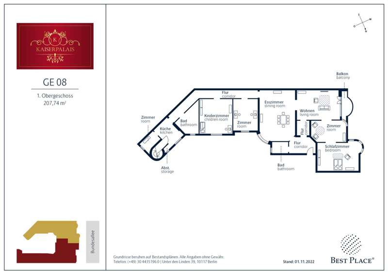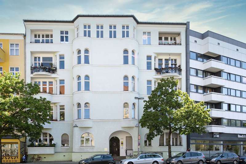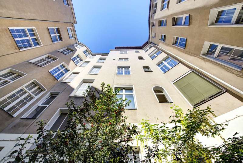The Kaiserpalais is an old Gründerzeit building whose street-side facade with its round oriels, round-arched windows and semi-circular balconies is a special example of upper middle-class living culture. At the rear, two side wings are grouped around a quiet green inner courtyard. The excellent old building fabric with its wood-panelled entrance, antique-style lift in the front building and an idyllic, bright inner courtyard provide a charming living experience. 15 rented residential and 4 commercial units are for sale in the Kaiserpalais. The flats are located in the front building as well as in the side wing and have living spaces between approx. 56 m² and 206 m². Most of the units are equipped with a balcony. Cellar compartments are available.