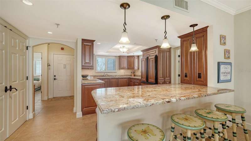 Gulf-Front Elegance at The Players Club. Welcome to the epitome of coastal luxury living at The Players Club, where the pristine shores of Longboat Key meet world-class resort-style amenities. This beautifully renovated 3-bedroom, 2-bath split-plan residence is being offered turn-key furnished - ready for you to move in and immediately embrace the Gulf-front lifestyle. From the moment you step inside, you’ll notice the attention to detail: custom ceramic tile floors, exquisite cabinetry, and a thoughtfully designed open kitchen that seamlessly flows into the dining area/great room - perfect for entertaining. The gourmet kitchen is equipped with updated appliances, abundant storage, and elegant finishes, ensuring both functionality and style. Hurricane-impact sliding doors and windows provide peace of mind, while inviting breathtaking views of the pool, beach, and mesmerizing sunsets. Step onto your expansive terrace, the ideal setting for morning coffee or evening cocktails as you listen to the waves. The primary suite features generous walk-in closets, while the additional guest bedrooms, especially guest suite 3 with walls of closets, offers ample space for friends, family, and all your beach toys. The HVAC system has been updated and well-maintained, ensuring comfort year-round. Enjoy the privacy of a semi-private elevator, shared with only one neighbor, leading directly to your covered parking space just steps from your door. At The Players Club, every day feels like a vacation. Amenities include a renovated clubhouse with catering kitchen and library/meeting room, resort-style pool & cabanas just steps from the beach, Har-Tru tennis courts, pickleball, and putting green, and 24-hour fitness center, fire pits, and outdoor BBQs. You’ll also appreciate the fully funded reserves, successful milestone inspections, and recent elevator update/certifications, ensuring security and long-term peace of mind. Perfectly situated near the new St. Regis Resort and offering optional membership at The Longboat Key Club & Resort, you’ll have access to world-class golf, dining, tennis, and the only deep-water marina on the island. A short drive brings you to St. Armands Circle for upscale shopping, art galleries, and fine dining. Experience the best of Longboat Key living - call today to arrange your private showing and start living your Gulf-front dream.