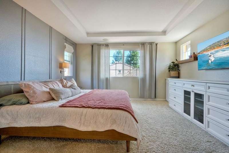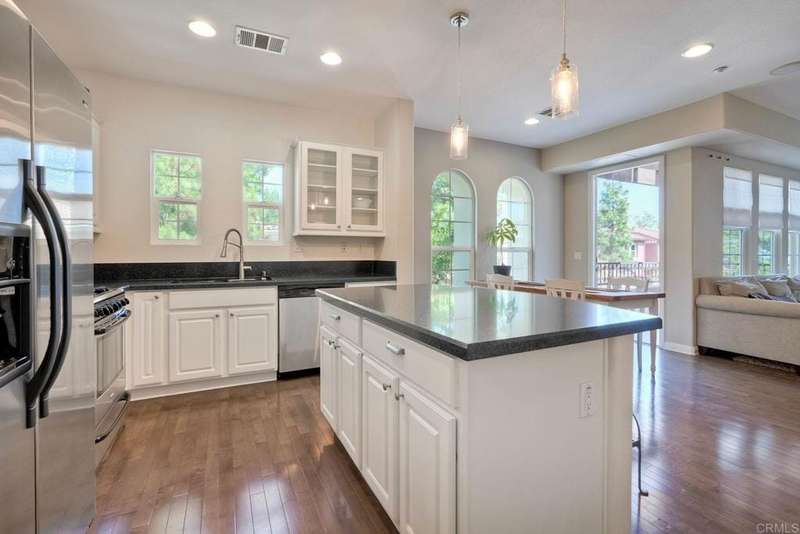 Discover a modern 3-bed, 2-bath, 3-story Westridge townhome in coveted San Elijo Hills. The main level offers two bedrooms, an open-plan kitchen/living area, and a deck. Ascend to the third-floor primary suite with high ceilings and peek-a-boo ocean views. Built in 2004, this gated community features a pool, spa, and BBQ area. Residents enjoy the award-winning town center, top-rated schools, 18 miles of trails, spacious parks, and sweeping ocean-to-mountain vistas including Double Peak Park.