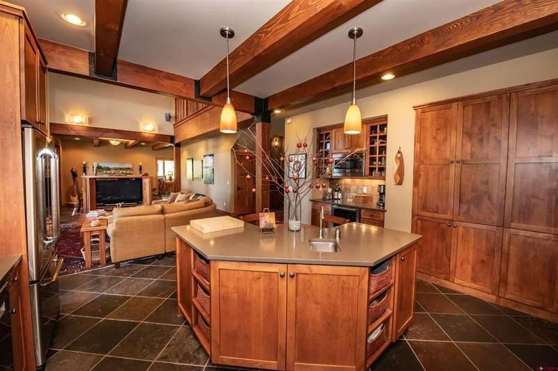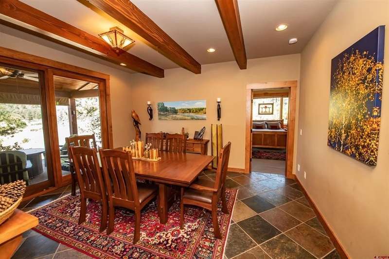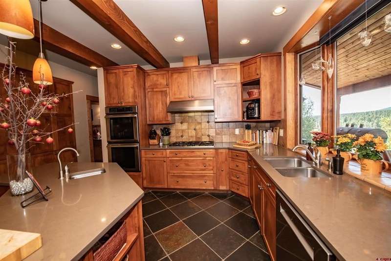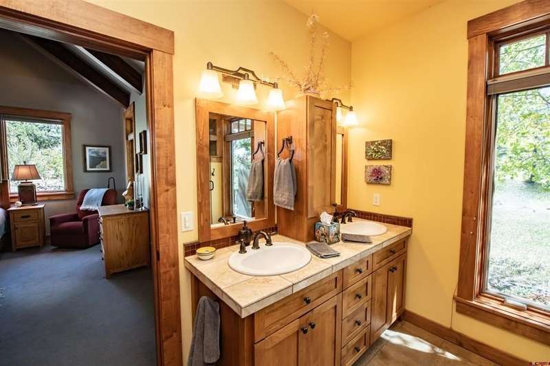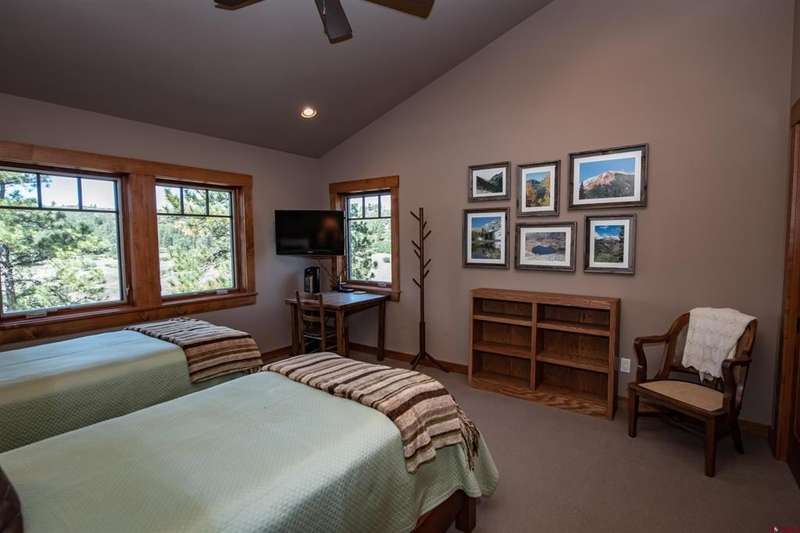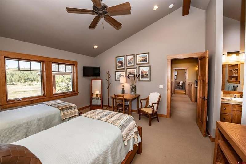 Diane Burnett, Galles Properties, C: 970-749-4303, diane@gallesproperties.com, www.gallesproperties.com: Welcome to 592 Santino Place in The Reserve at Pagosa Peak – a stunning, craftsman style mountain retreat offered furnished with high end, custom-built furnishings and cabinetry throughout. Built by locally renowned builder Anthony Doctor, this 2,792 sq. ft. residence offers 3 bedrooms and 4 full baths, with three en-suites for ultimate privacy and comfort. An additional office/TV room with custom cabinetry and a closet could easily serve as a fourth bedroom. The main-level primary suite features lots of windows, direct access to the back deck, dual built-in desks, double vanities, walk-in closet, custom tiled shower and in-floor heat. The great room has tongue-and-groove, vaulted ceilings, a wood burning fireplace Xtrordinair set in a stone backdrop with a custom wood mantle framed by floor to ceiling windows creating a warm and inviting living space. The custom-built dining service bar houses the TV. The gourmet kitchen is a chef’s dream, with high-end stainless-steel appliances including a Dacor refrigerator, Thermador ovens, wine cooler, and wet bar. Custom built-ins house small appliances like a mixer, toaster, and blender, while abundant cabinetry ensures every item has its place. The kitchen island allows additional seating. Thoughtful extras abound: a secret playroom for little ones, a craft/sewing desk in the laundry room, central vacuum system, AC, and a 316 sq. ft. bonus room above the garage ready to be finished for even more living space. Step outside to enjoy the firepit and covered back decks perfect for grilling, sunsets, and wildlife watching. The property spans 1.16 acres across three lots, beautifully landscaped with pines, aspens, and drip irrigation, all set at the end of a cul-de-sac on an elevated parcel overlooking the San Juan National Forest. The Reserve offers gated access, paved roads, and city utilities. From your backyard, hike, bike, snowshoe, or ski directly into hundreds of acres of groomed trails via the greenbelt into national forest. A three-car garage, paved driveway, security system with cameras, Starlink Internet, and available plans for an additional detached garage/shop complete this exceptional offering. This home combines luxury, functionality, and adventure - a furnished residence in one of Pagosa Springs’ most sought-after gated communities.