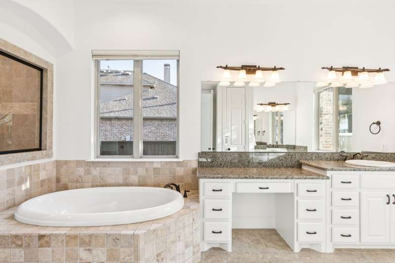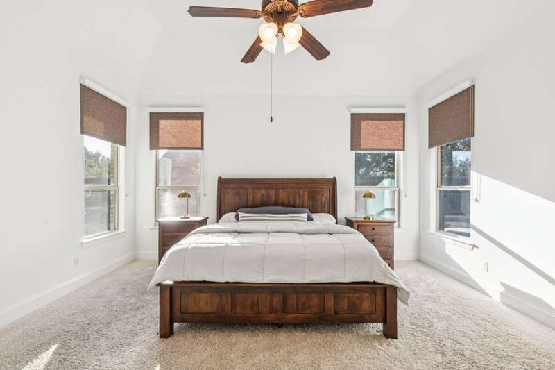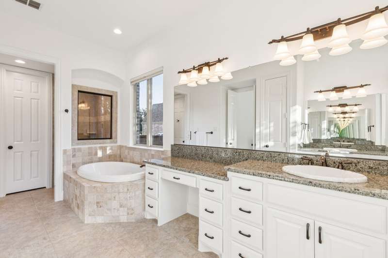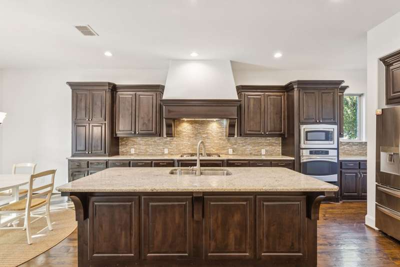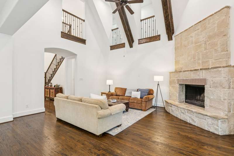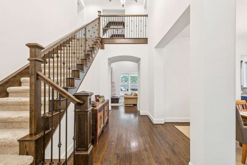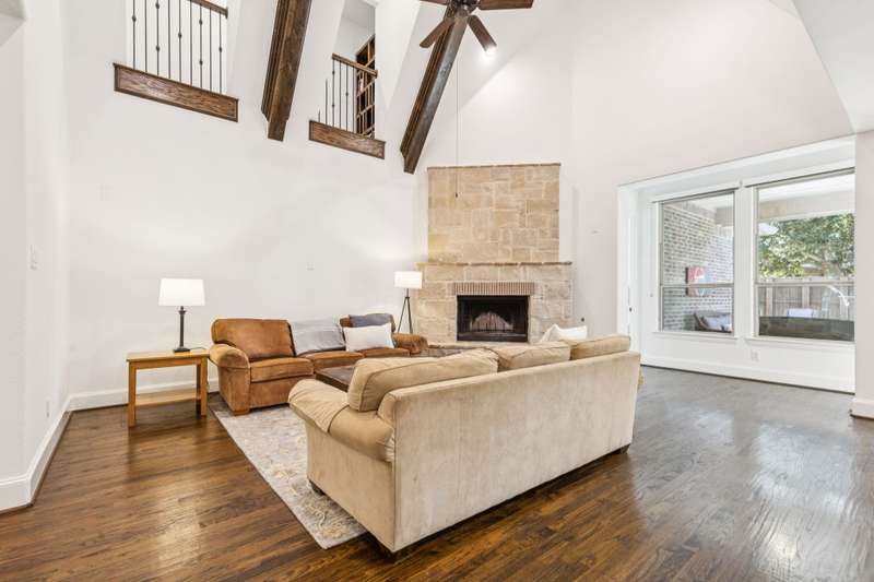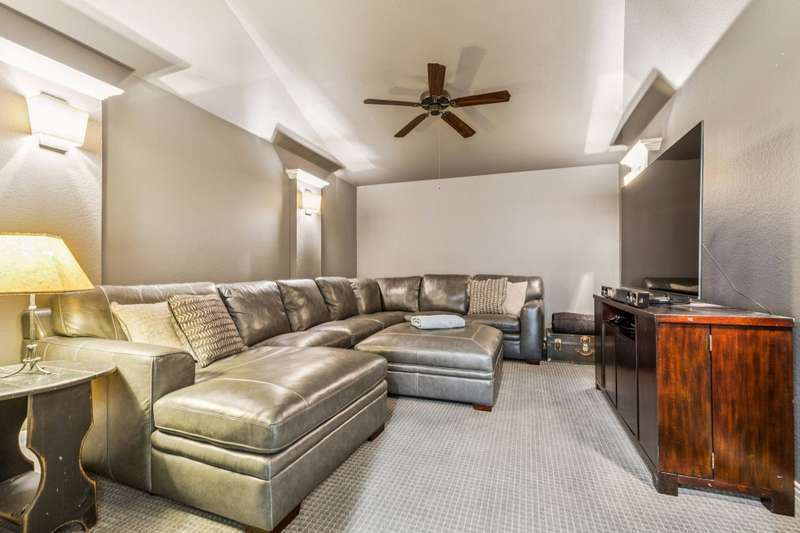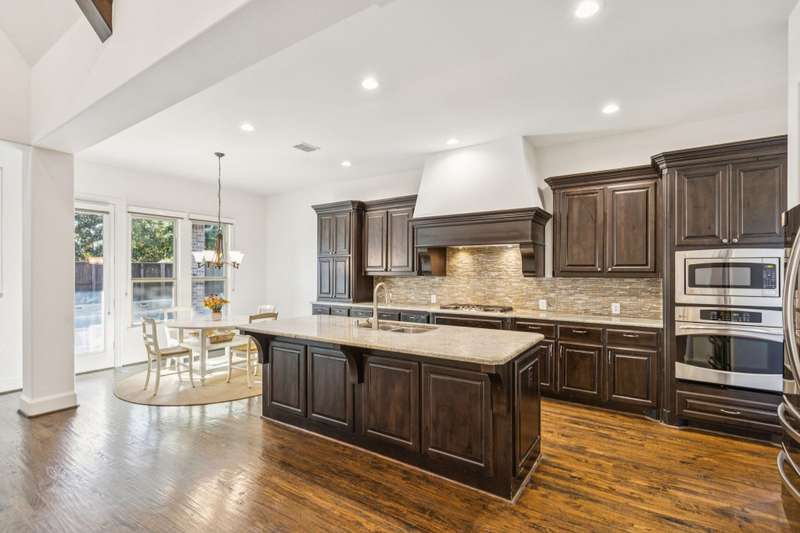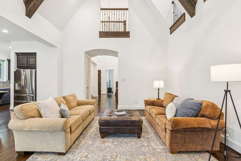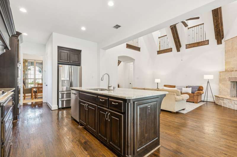 Welcome to 921 Escalante in Whitley Place, a stunning Prosper residence that perfectly blends elegance, comfort and resort-style living! This beautifully crafted home impresses from the moment you arrive with its inviting covered front porch, a perfect place to relax and enjoy the peaceful surroundings. Step inside to find rich hardwood floors that flow seamlessly through the entry, dining, family room, and kitchen, creating warmth and continuity throughout the main living areas. A private study with French doors provides a quiet space for work or reading. The family room is the heart of the home, featuring a striking stone fireplace, soaring vaulted ceilings with wood beams, and large windows that fill the space with natural light. The open-concept design leads effortlessly into the chefs kitchen, complete with a large island, granite countertops, stainless steel appliances, a gas cooktop and an expansive breakfast nook. The luxurious primary suite on the main floor is a true retreat with ample space for a sitting area and an en-suite bath featuring granite countertops, a garden tub, separate shower and a spacious walk-in closet. A secondary bedroom with a full bath downstairs provides excellent flexibility. Upstairs, discover a large game room and a dedicated media room perfect for movie nights. Two additional bedrooms share a stylish Jack-n-Jill bath, offering comfort and privacy. The utility room is well-equipped with space for a freezer and plumbing for a sink, adding to the homes practicality. Step outside to your personal paradise! The covered patio overlooks an incredible backyard oasis complete with a sparkling pool, relaxing spa, and diving board, the ultimate setup for year-round fun and relaxation. Theres plenty of space for outdoor dining, lounging, or hosting unforgettable summer gatherings. Located in the sought-after Whitley Place community, residents enjoy walking trails, ponds, parks, playgrounds and access to top-rated Prosper ISD schools.