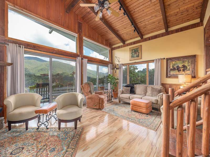 Breathtaking mountain views, without the steep drive! This beautiful 2BR/2BA townhome in Waynesville's desirable Balsam area offers the perfect blend of serenity, charm, and practicality. Unwind in the spacious great room by the cozy gas log fireplace, or slide open the doors to your oversized deck and take in the sweeping year-round vistas. The lush, landscaped yard is perfect for garden lovers and evenings around the fire pit. With bonus storage below the deck and a location just minutes from the downtown Waynesville and Sylva, this home offers the ideal mix of comfort and convenience. Just minutes from the Blue Ridge Parkway you'll love the peaceful setting with easy access to dining, shops, and outdoor adventure. Whether you're looking for a weekend escape or a full-time haven, this is mountain living at its best!