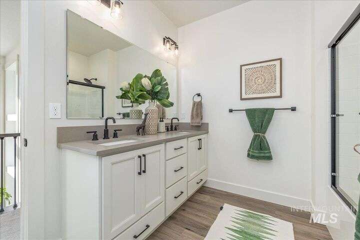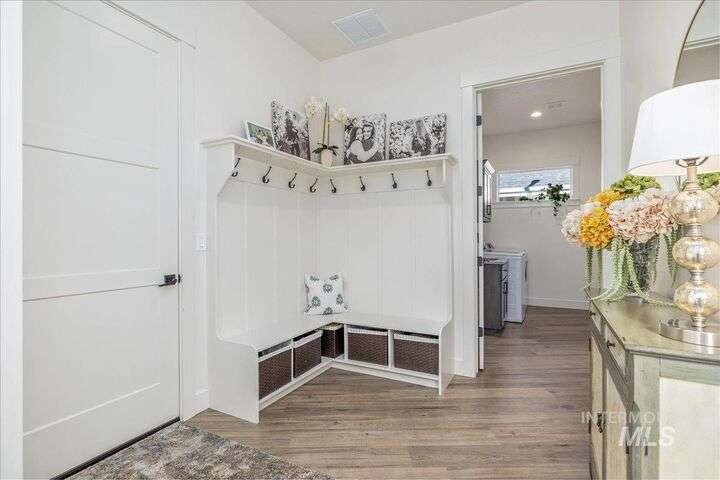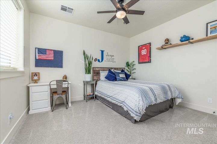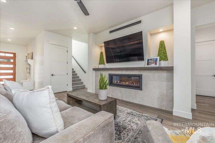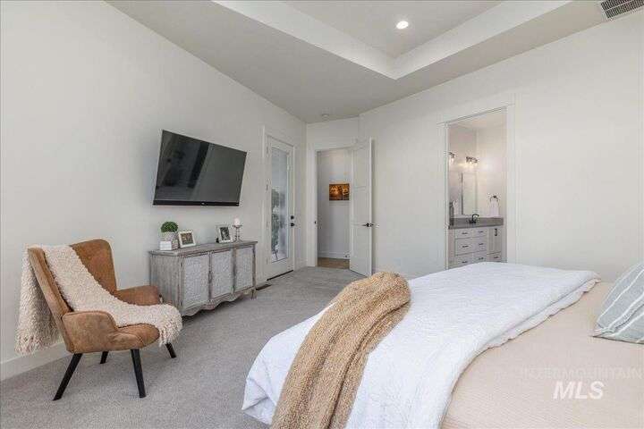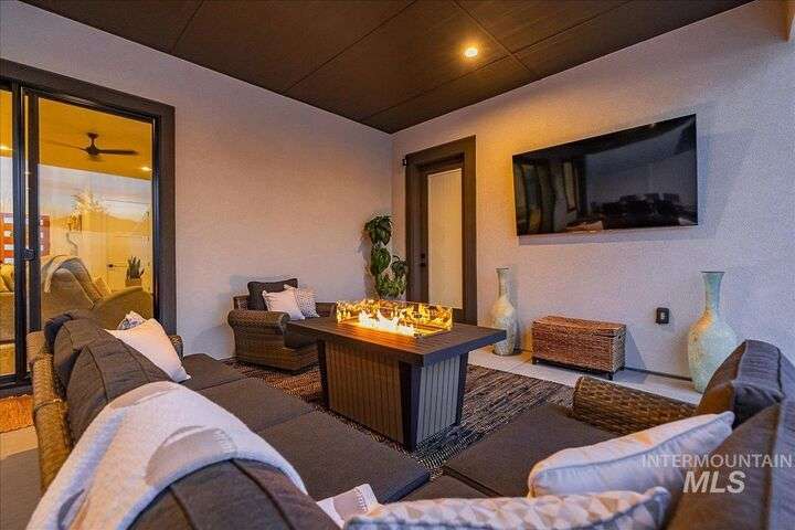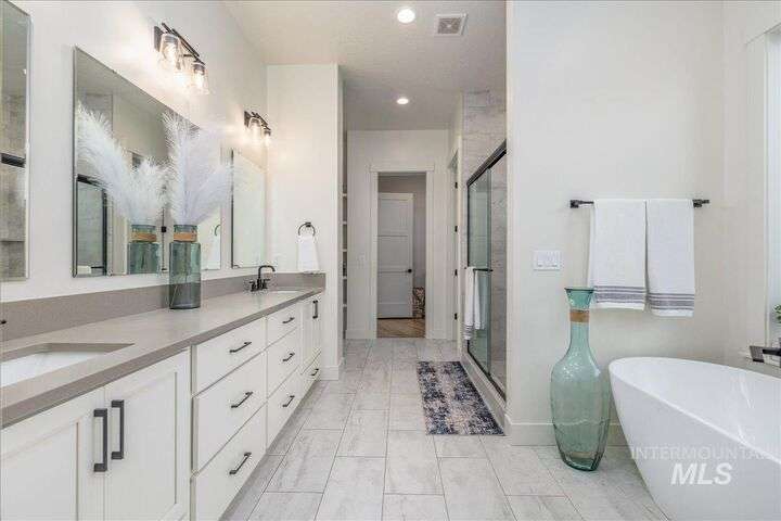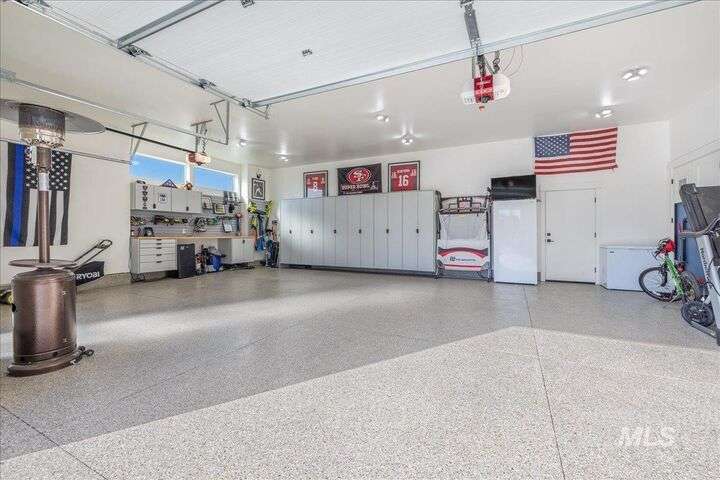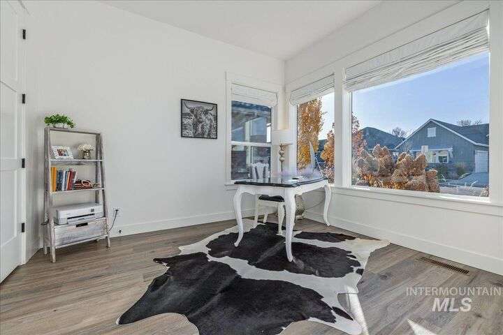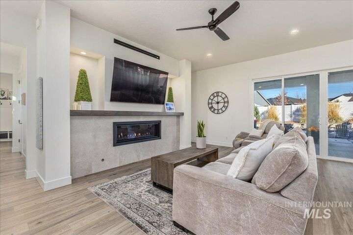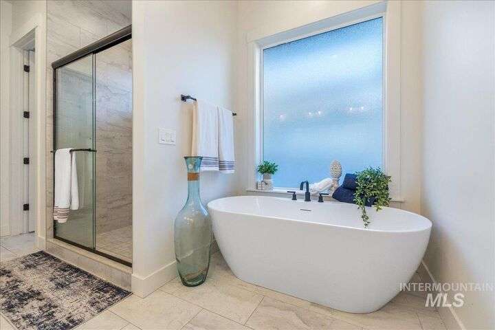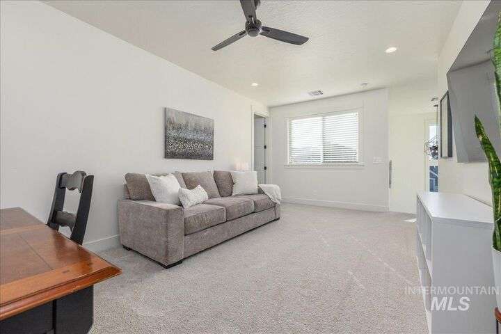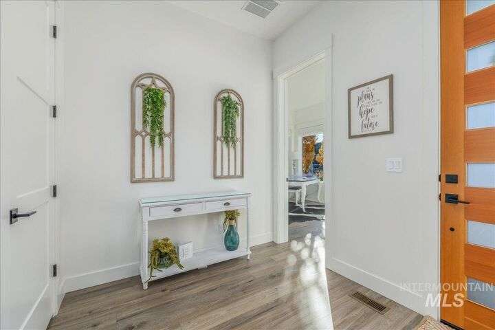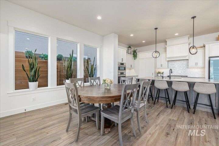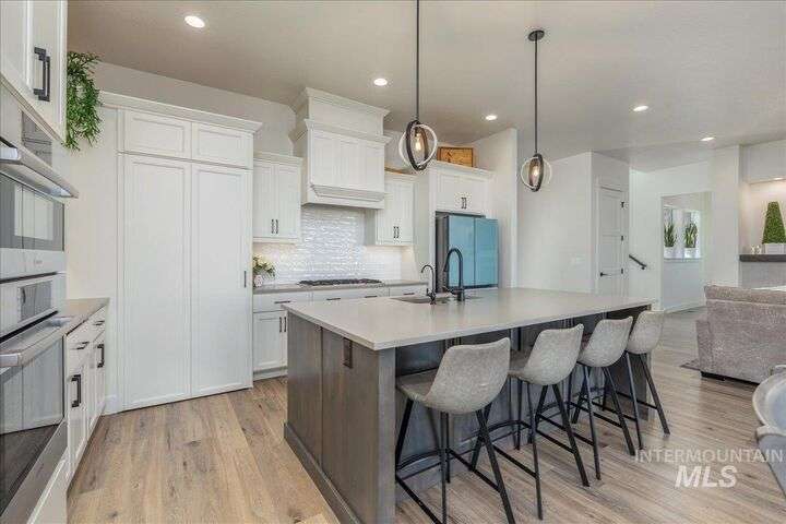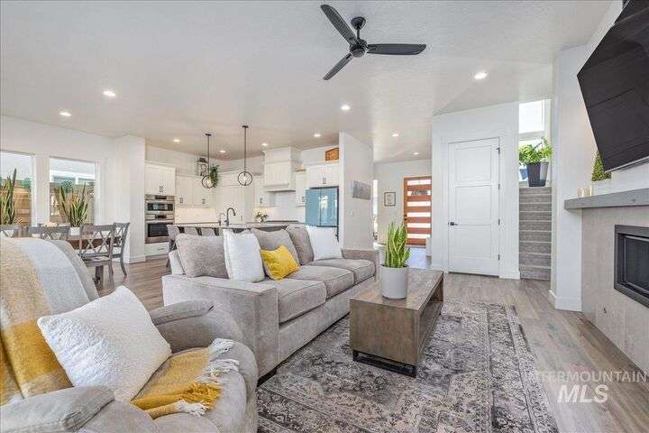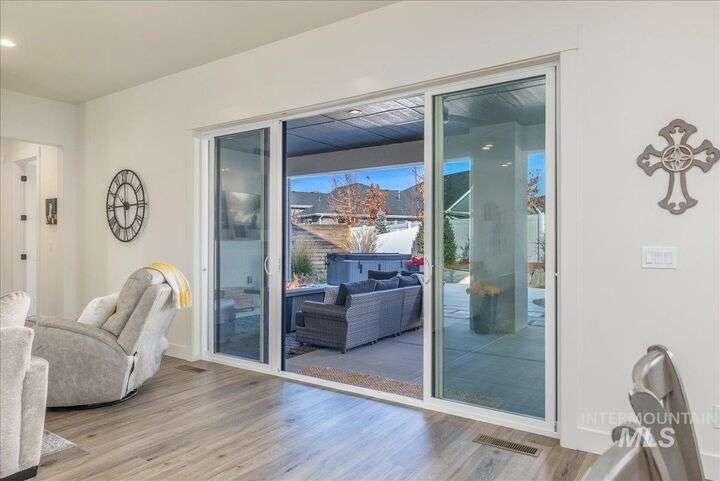 Welcome to this stunning custom-built modern farmhouse in Dry Creek Ranch—where timeless design meets a luxury lifestyle in the heart of the Boise foothills. This 4-bedroom, 2.5-bath home offers 3,099 sq. ft. of thoughtfully designed living space blending comfort, style, and function. The open-concept layout is ideal for entertaining, featuring a chef’s kitchen with quartz countertops, custom cabinetry, premium appliances, and an expansive island that flows into the dining and great room. An oversized walk-in butler’s pantry, hidden behind a custom cabinet pantry door, provides generous storage and prep space. High-end finishes and custom window coverings add warmth and sophistication throughout. The primary suite offers a spa-like retreat, while the additional bedrooms provide flexibility for guests or a home office. Step outside to a luxurious and private backyard oasis featuring a 16' x 33' covered patio (528 sq. ft.) with automatic screens that fully enclose the space for year-round enjoyment, a plumbed custom-built fire pit, BBQ island, and above-ground hot tub—perfect for relaxing or entertaining. Designed with care and built with quality, this home captures the best of Idaho living.