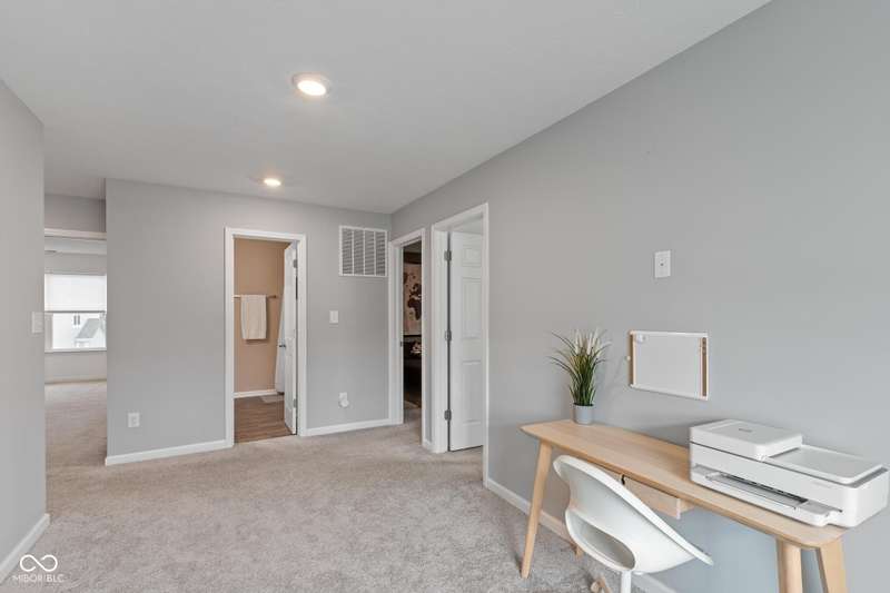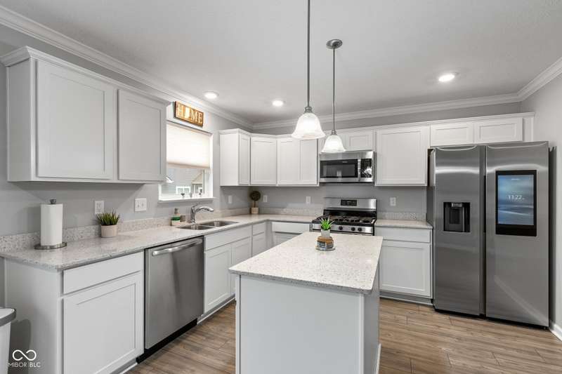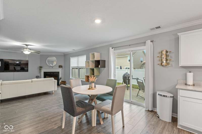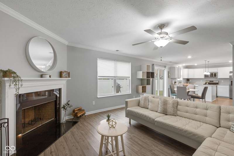 Welcome to this beautifully maintained 4-bedroom, 2.5-bath home offering a spacious and functional layout perfect for everyday living and entertaining. Just off the entry, you'll find a private office with double doors, ideal for remote work or a quiet retreat. The open-concept main level features a light-filled great room with large windows and a cozy fireplace, seamlessly flowing into the dining area and stylish kitchen. The kitchen boasts gorgeous countertops, an upgraded refrigerator, stainless steel appliances, a center island, and plenty of room to gather. Glass sliding doors lead from the dining space to a concrete patio, extending your living space outdoors. Upstairs, the expansive primary suite includes a generous en-suite bathroom with dual vanities, a soaking tub, and a glass-enclosed shower. Three additional bedrooms offer generous space and share a full bath. Situated on a corner lot, the fully fenced backyard with privacy fencing provides a private space to relax or play. The recently epoxied garage floors extends the amount of thoughtful finishes you see throughout, this home is move-in ready and full of charm.