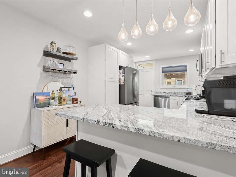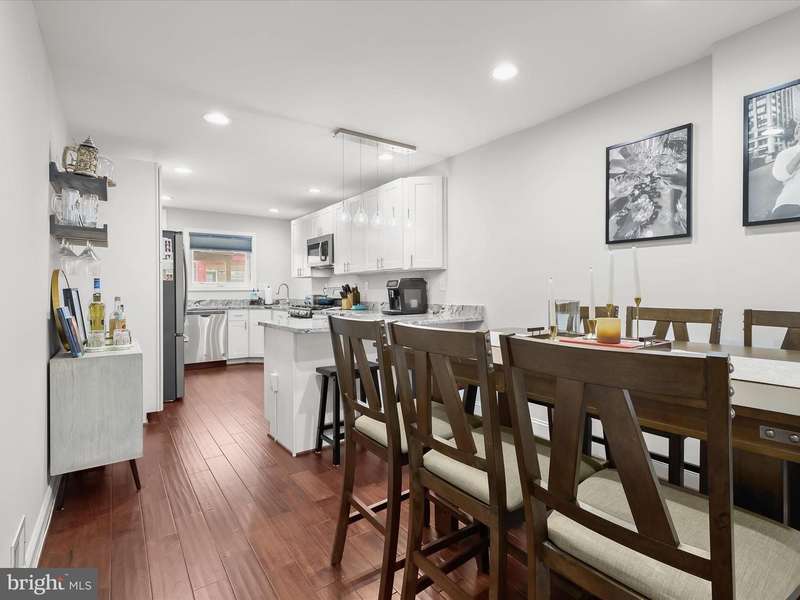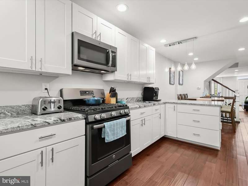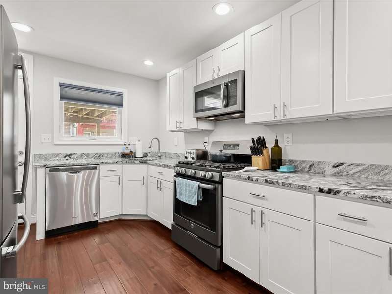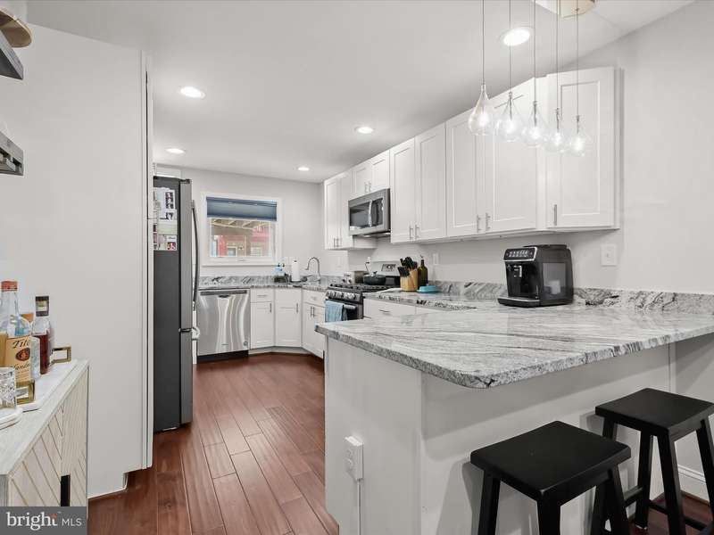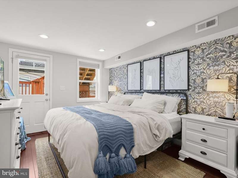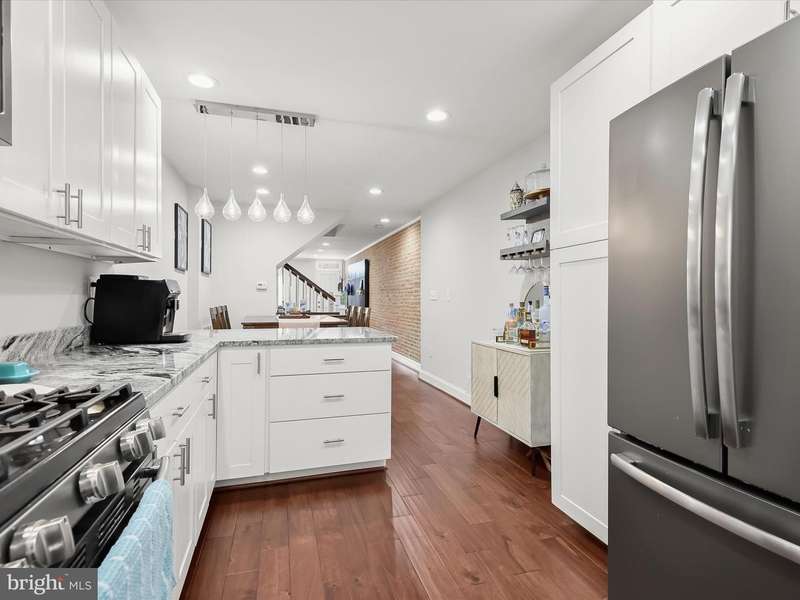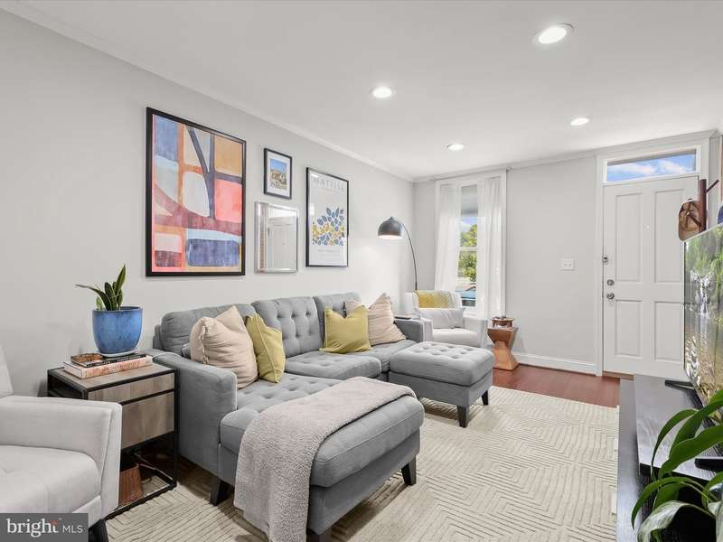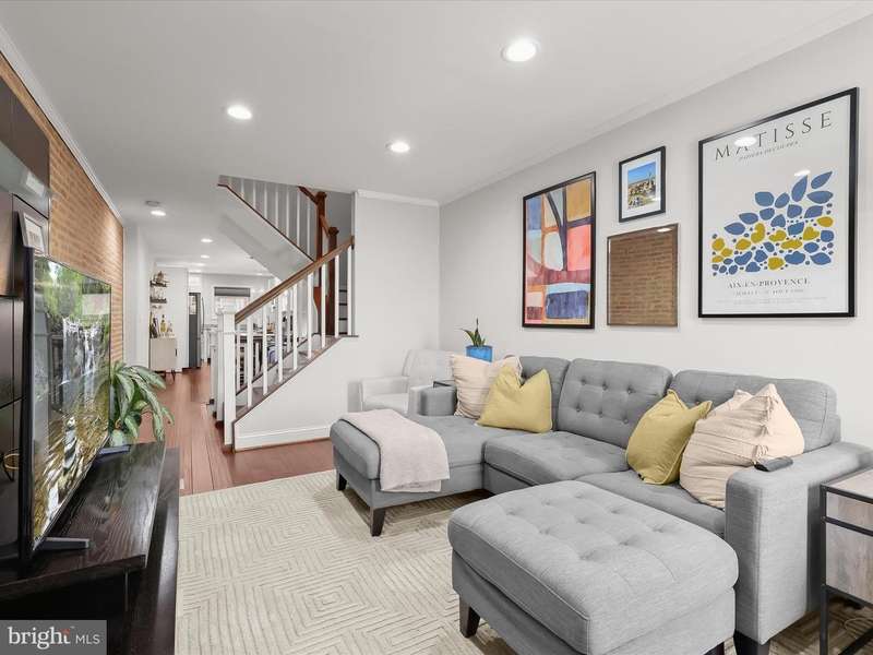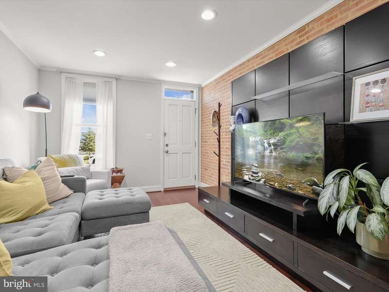 Introducing this beautifully updated rowhome in Locust Point, offering three bedrooms and three full bathrooms across three thoughtfully designed levels. A private parking pad, ample street parking, and a rooftop deck with 360-degree city views elevate everyday living. Inside, a neutral color palette, recessed lighting, and engineered wood flooring create a warm and inviting atmosphere throughout. Crown molding and an exposed brick accent wall highlight the front living room, while the open-concept layout seamlessly connects the dining area and kitchen. Featuring stainless steel appliances, granite countertops, shaker-style soft-close cabinetry, and a breakfast bar with pendant lighting, the kitchen is both stylish and functional. Upstairs, the primary bedroom suite has direct access to the rooftop deck along with a luxurious private bathroom boasting a frameless walk-in shower with bench seating and a dual sink vanity. A second bedroom and another full bathroom complete this level. The finished lower level extends the living space with a third bedroom, an additional full bathroom, and a utility room with laundry. Enjoy the best of city living located in the vibrant Locust Point neighborhood with local parks, shops, dining, entertainment options and so much more. Additionally, there are three years left on a CHAP credit.