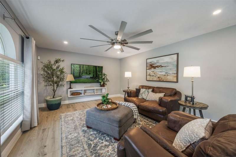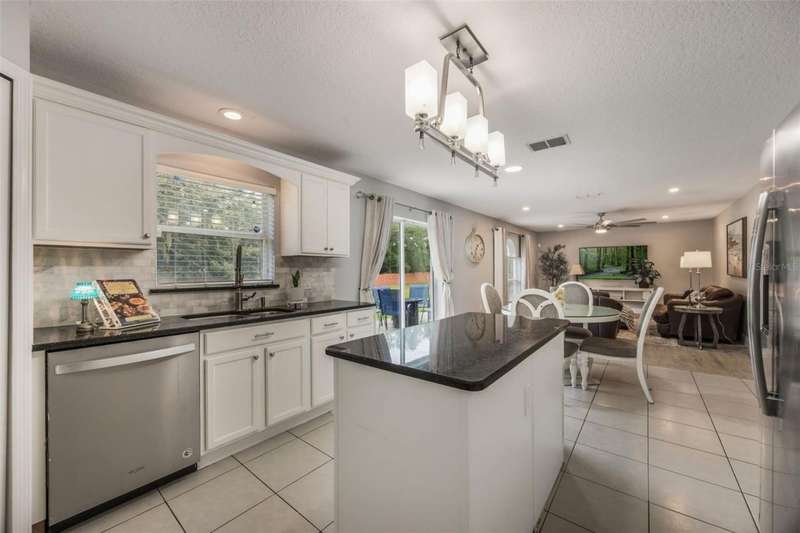Under contract-accepting backup offers. One or more photo(s) has been virtually staged. This well-kept home proves that smart layout, solid care, and a great location are what matters most. Tucked away in a quiet, established community shaded by mature oaks, it offers the perfect blend of flexibility and everyday convenience - all with low HOA fees. Step inside and you will find a clean, move-in ready space with room to grow. The original owners have lovingly maintained and thoughtfully updated this home, and are now downsizing. It is ready for its next chapter. The LAYOUT is ideal for those who crave flexible space; DOWNSTAIRS offers a versatile room that works nicely as an office, guest space, or fifth bedroom; a half bath, dining room/living room, laundry, family room, eating area and a kitchen. UPSTAIRS, 4 bedrooms, two full baths, and a generous loft with Travertine floors throughout, complete the upper level, offering plenty of room for family or guests. New Roof (2023), freshly painted exterior and partial interior (5/25), stylish new lighting, new Google Nest Learning Thermostat. The heart of the home, the KITCHEN, was beautifully renovated in 2020, with new cabinets, granite countertops, updated appliances, a center island, and two walk-in pantries. Whether you are cooking for two or a crowd, this space just works. A window over the sink frames a peaceful view of the tree-lined retention pond - no rear neighbors, just quiet privacy. PRIMARY SUITE: Upstairs, the spacious primary bedroom is a standout, offering room to accommodate a sitting area, office space, or home workout area. Bath: is impressive and modern with a roomy, spa-inspired shower with its 2 rainfall shower heads and sitting bench. Closet: Large L-shaped, walk-in closet complete with built-in shelving, shoe racks and accessory storage. In a time when many neighborhoods feel crowded, this community stands out with well-spaced homes that offer a true sense of privacy and separation. Minutes from shopping, dining, churches, major roads and activities. Apopka is one of Central Florida's top destinations for outdoor recreation, with beautiful landscapes of lakes, springs and natural land areas to get away and explore the best of nature.