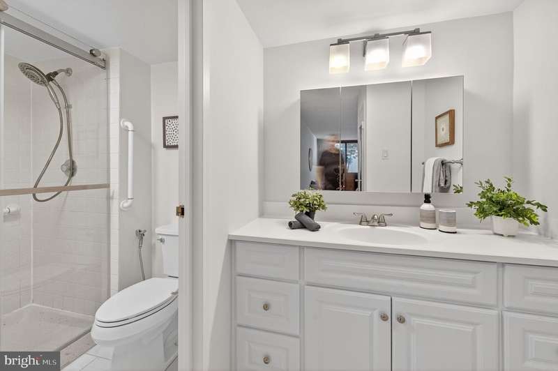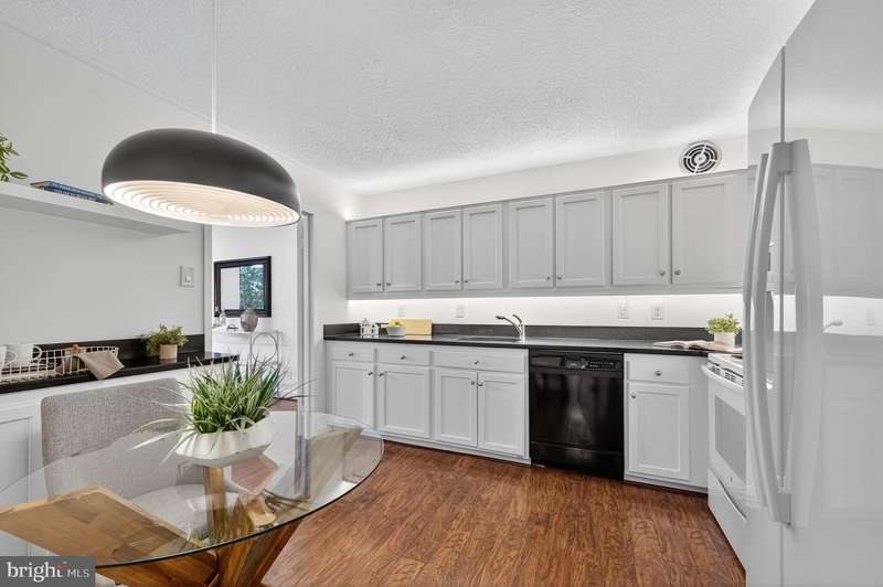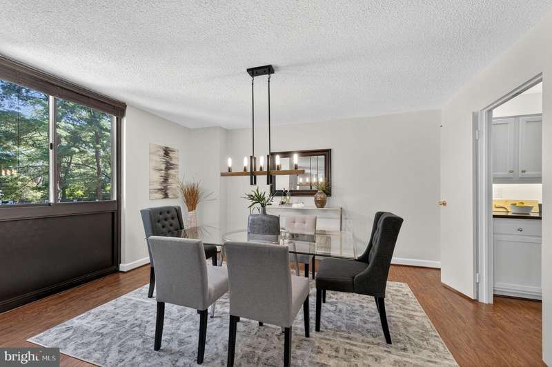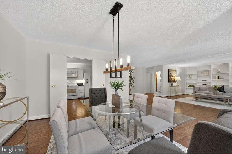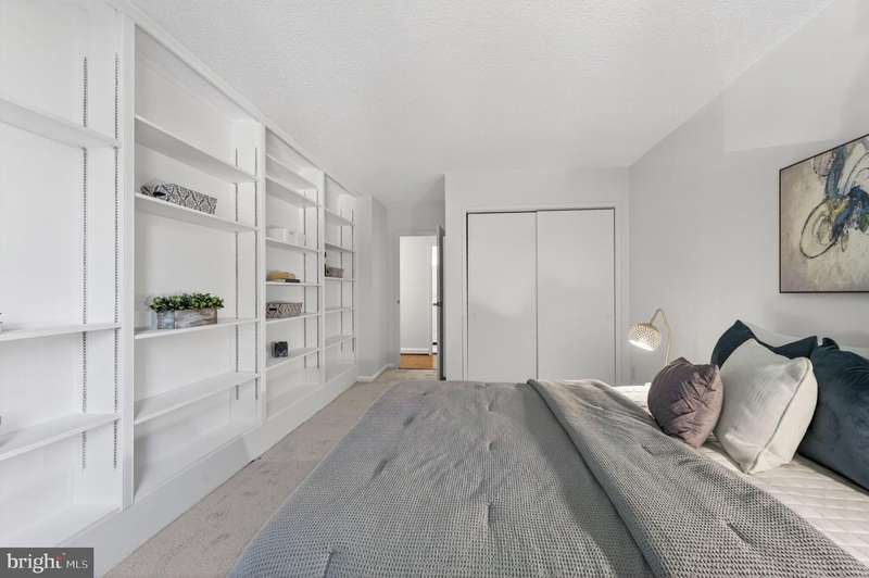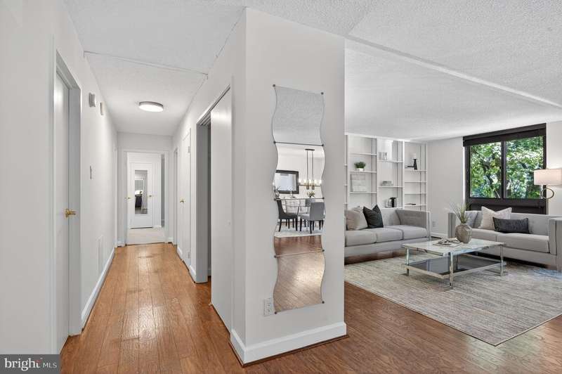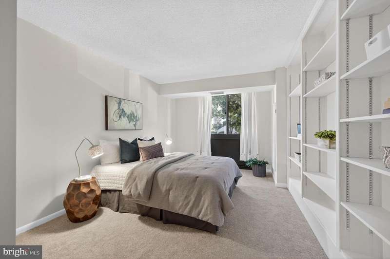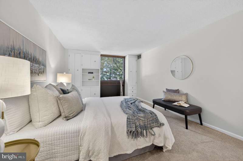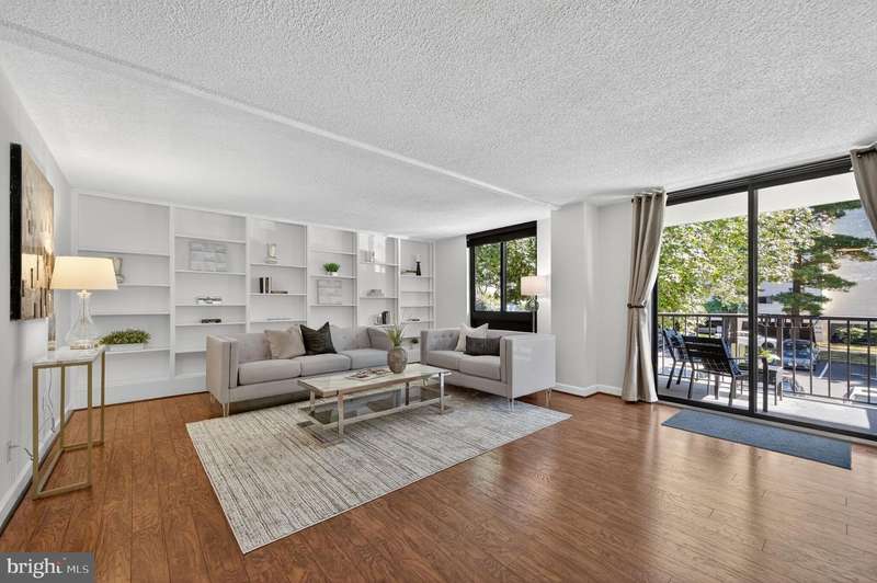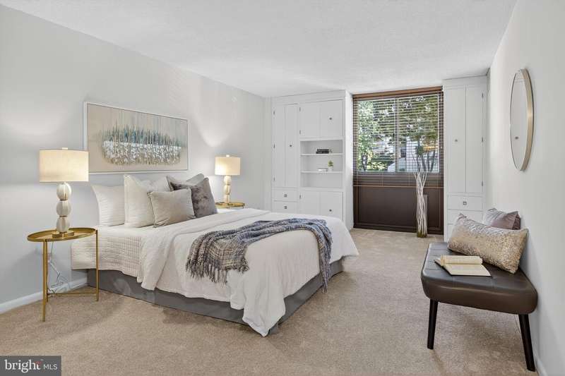 Rarely available floor plan - originally a 3-bedroom, has been reimagined into a spacious 2-bedroom with a dramatically expanded living room, creating an open and inviting space ideal for entertaining and modern living. A spacious and beautifully updated condo in sought-after Westlake Terrace! Freshly painted with new lighting and new carpet in the bedrooms. Bright and open layout features hardwood floors in the living and dining areas, opening to a private balcony. Updated eat-in kitchen and two modern full baths. Custom built-ins in the living room and both bedrooms. Generous primary suite with a huge walk-in closet. New in-unit washer/dryer, garage parking, and extra storage included. Enjoy resort-style amenities: outdoor pool, tennis & pickleball courts, fitness center, party room, rooftop terrace with breathtaking view, and abundant guest parking. Incredible location-walk to Montgomery Mall and Cabin John Park, with easy access to I-270 and I-495. Condo fee covers all utilities, electric, gas, AC, and basic cable!