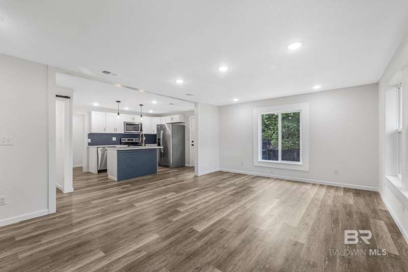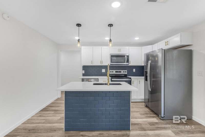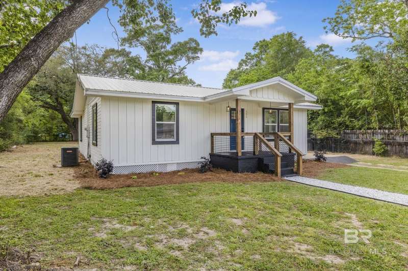 Seller is offering closing costs or rate buy down assistance with acceptable offer! New fortified metal roof and transferable termite bond! Welcome home to this beautifully renovated cottage offering the charm of a classic home with the clean, refreshed condition of new construction. From the first glance, you'll appreciate the crisp exterior with fresh paint, new siding, updated landscaping, and an eye-catching front door that sets the tone for what's inside. Step into a bright, open layout featuring luxury vinyl plank flooring throughout, fresh interior paint, and a stunning kitchen complete with quartz countertops, stainless appliances, a bold navy tile island, and elegant gold hardware. Every finish has been thoughtfully selected to create a space that feels both stylish and functional. Behind the scenes, enjoy the confidence of all-new electrical, plumbing, insulation, a new water heater, and much more! The sugar white sands of the Alabama Gulf Coast beaches are only a short drive away. Located just south of I-65, with easy access to Hwy 59 this property is convenient to Mobile and Pensacola. Schedule an appointment to view this property today! Buyer to verify all information during due diligence.