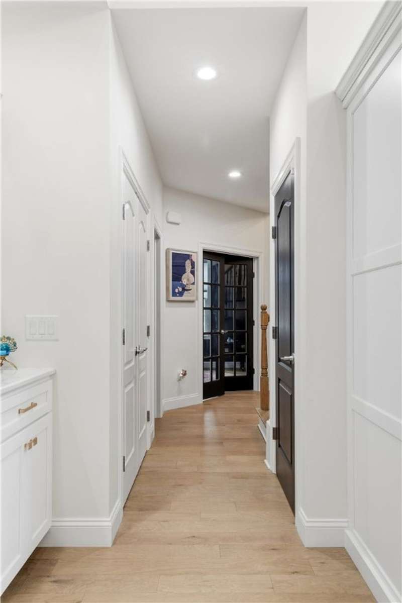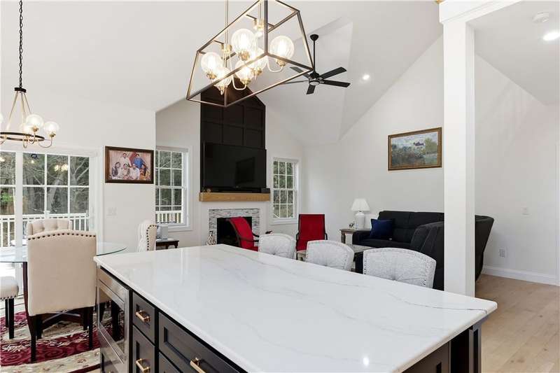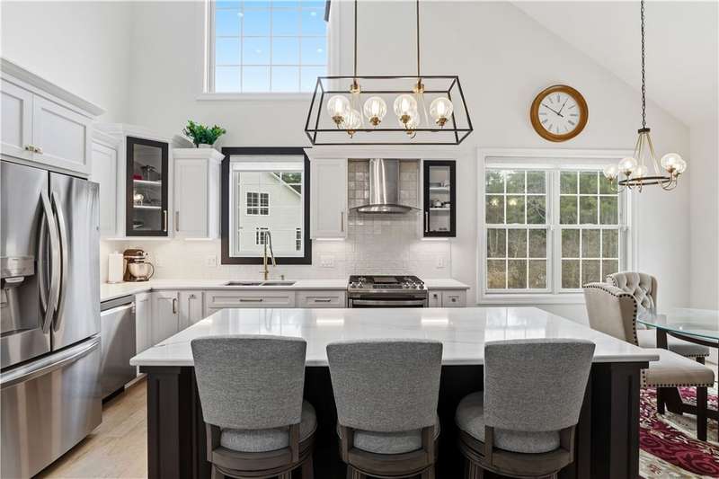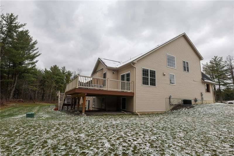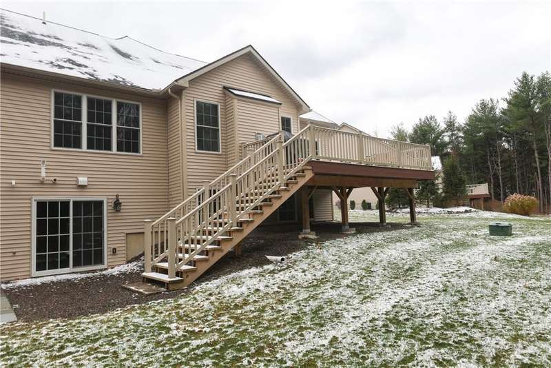 Pristine custom-built townhome loaded with upgrades and modern finishes. Enjoy engineered hardwood floors throughout and an inviting front foyer that opens to soaring cathedral ceilings with recessed lighting. The front room offers excellent versatility?perfect as a dedicated home office or a formal dining room. A thoughtfully curated, modern color palette flows seamlessly throughout. The stunning kitchen features Cambria quartz countertops, stainless steel appliances, bronze fixtures, and a spacious eat-up island. A bright breakfast nook with sliding glass doors leads to an oversized, private back deck?ideal for outdoor dining or relaxing. The open-concept layout continues into the living room, highlighted by an upgraded gas fireplace with a custom pure-wood mantle. The main-level primary suite includes a walk-in closet and a beautiful en-suite bathroom with a tiled shower and double-sink vanity. The upper level offers two generously sized bedrooms both with views of the neighborhood pond, a full bathroom, and a large family room that can serve as a playroom, computer room, recreation area, or additional living space?endless possibilities. A full, walkout basement awaits your finishing touches and opens directly to the private backyard. The attached two-car garage enters through a well-designed mudroom/laundry room for everyday convenience. Located just minutes from Cornell University, the Ithaca Mall, and downtown Ithaca, this exceptional townhome combines comfort, style, and convenience in one perfect package.HOA is monthly and covers road maintenance, road and driveway plowing, sidewalk shoveling, landscaping, pond and fountain upkeep, lawn maintenance & gutter cleaning as well as WIFI.