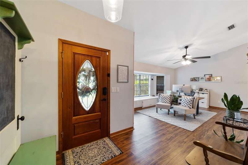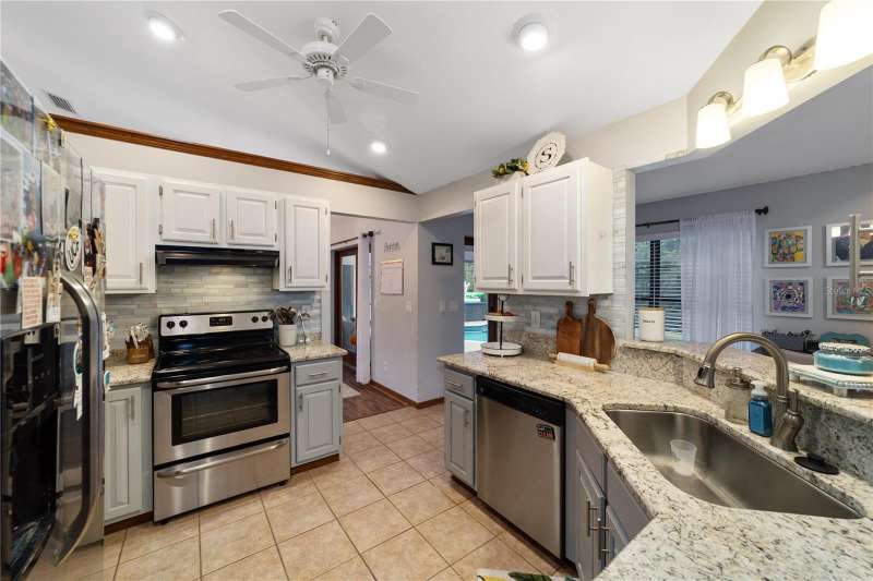Wonderful 3-bed/2-bath home sitting on just over one-third of an acre in sought after SE neighborhood. As you step inside, you'll be greeted by a spacious living room featuring a large picture window, perfect for letting in natural light and enjoying the view. Step around the corner into the cozy family room, complete with a lovely fireplace making it an ideal spot for relaxing evenings. The eat-in kitchen boasts beautiful granite countertops and is perfect for casual meals, while the separate dining room is great for more formal gatherings. This home has a functional split bedroom floor plan, ensuring privacy for everyone. The master suite and additional bedrooms are well-sized and offer plenty of storage. Head outside to the screen-enclosed pool, perfect for hot summer days, and the large, fenced in backyard. It's an ideal space for outdoor entertaining, gardening, or simply enjoying the tranquility. Don't miss out on this wonderful opportunity to make this charming house your new home. Make your appointment to come see it today!
