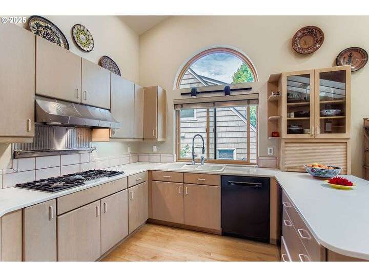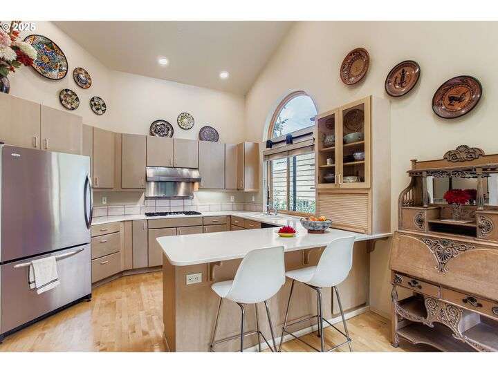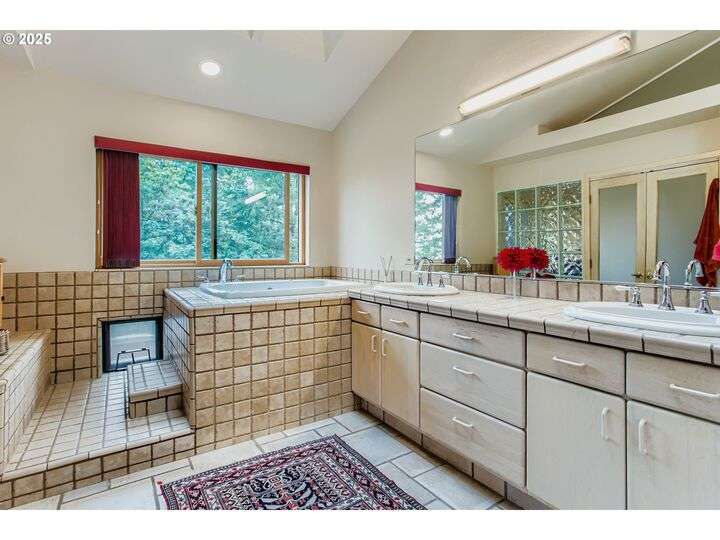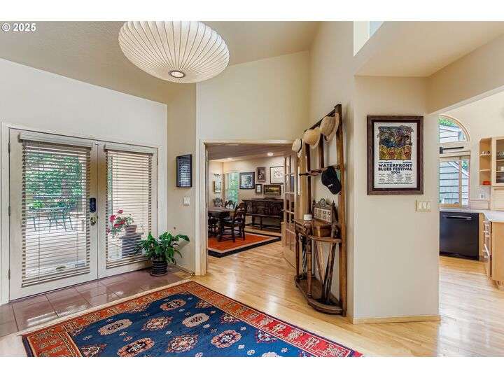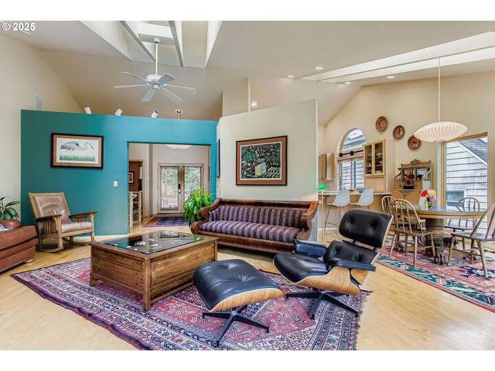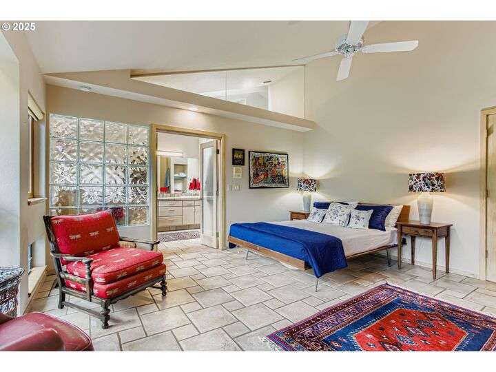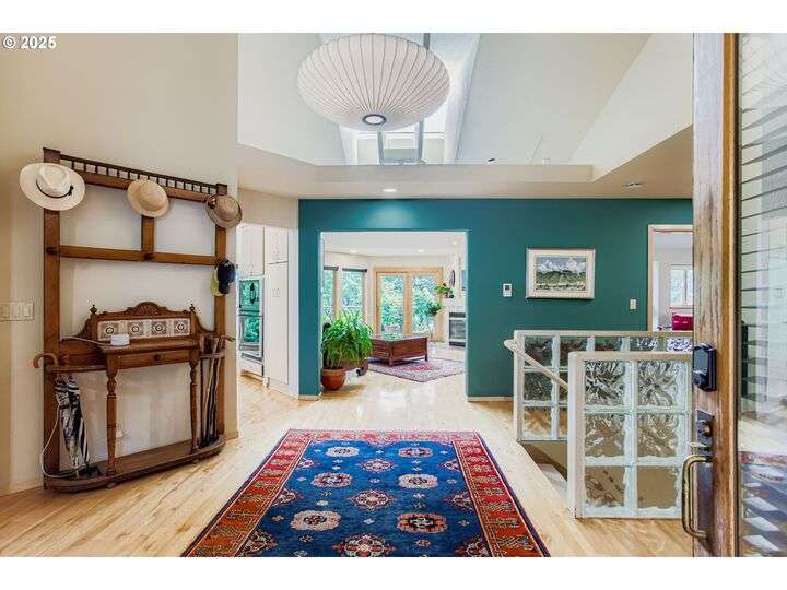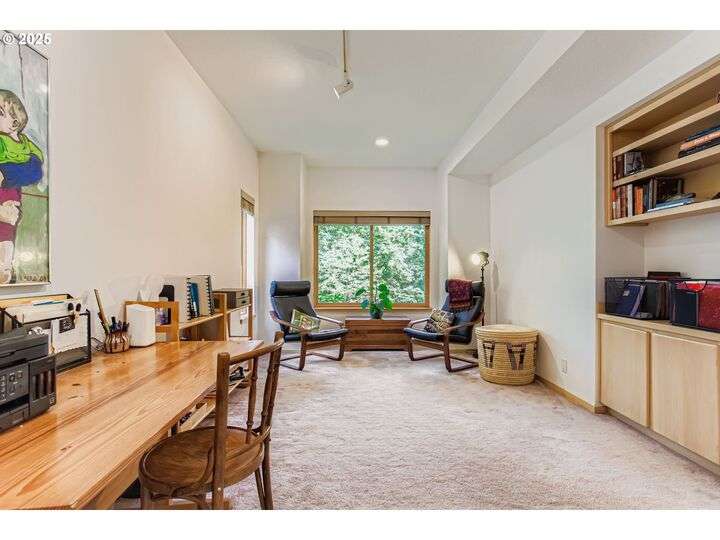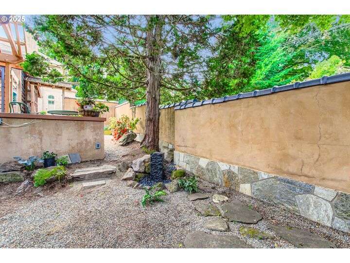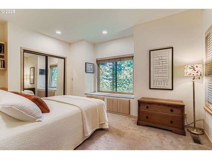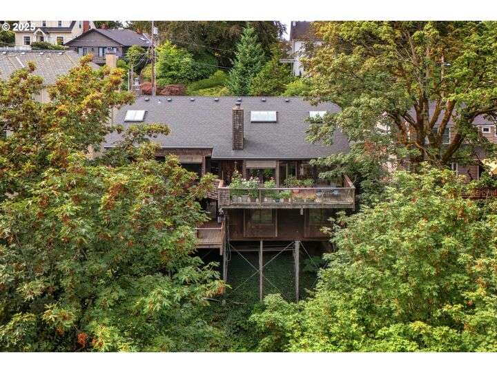 Designed by award-winning Alan Mascord, this light and airy contemporary takes full advantage of its Council Crest setting with vaulted ceilings, skylights, and forest backdrop. A Japanese garden-style entrance and all-season porch open to a spacious foyer. Formal dining with barrel wood ceiling and built-ins, seats 10 with garden views. Sunny kitchen with new gas cooktop, Corian counters, built-ins, and eat-in-bar flows to a nook with deck access and forest views. The living room with gas fireplace completes the open layout. The main floor primary suite opens to the deck and features a reimagined design with a Japanese-style soaking tub, a walk-in shower, and walk-in-closet. A half bath, laundry, and attached two-car garage complete this level. The lower-level family room is a cozy hangout for movie nights with custom bookshelves, an eat-in bar, and a newer Jøtul wood stove. Sellers added a Sturdi-Built cedar and redwood greenhouse that supports year-round gardening, provides passive solar heat, and offers a space for winter exercise. Two additional bedrooms and a bathroom complete the lower level. A private sauna enhances comfort. Anderson double-paned wood windows and sliders in most of the home. Upgraded systems over the years. Wired for 220 car charger. Newer garage door. Outdoor living includes covered front and back decks, gardens visited by many bird species, and peekaboo Mt. Adams views. The shade garden, anchored by Hinoki Cypress and Japanese Snowbell, inspired the entry’s transformation with a hand-built Japanese-style wall, custom gate, “black rock river,” and fountain, creating an ever-evolving garden retreat. Enjoy nearby Healy Heights and Council Crest Park or the 3.5-mile Fairmount Loop. Forest trails connect to Marquam, Washington Park, and Downtown via the 4T and Council Crest loops. Five minutes to OHSU with quick access to downtown, Hillsdale, Raleigh Hills, and Sunset Highway. After 29 cherished years, this home is ready for its next chapter.