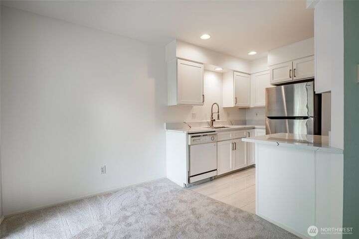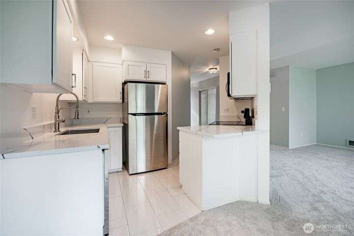 Festival Square, a 55+ community located in the Cordata neighborhood, offers the perfect blend of comfort and convenience. This 1,009 sq. ft. condo features 2 bedrooms, 1.75 baths with fresh paint and new wall-to-wall carpet. The updated kitchen shines with new cabinets, flooring, range, refrigerator, and microwave. A private deck extends your living space, while the spacious primary suite includes its own bath. Covered parking and a storage unit add everyday ease. Residents enjoy a beautiful clubhouse and peaceful surroundings with nature trails, nearby pickleball courts and parks. Close to shopping, dining, transit and healthcare, this move-in ready home offers the ideal mix of low-maintenance living and an active, welcoming community.