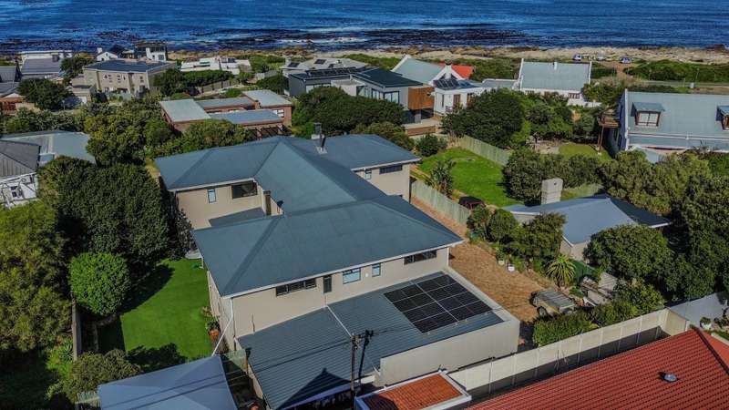 Joint Mandate: Tucked away in an exclusive cul-de-sac of only six properties, this exceptional home enjoys one of the most enviable positions in the area ?Çô mere steps from Jan Rabie?ÇÖs tidal pool and the famed cliff paths of Hermanus. Here, rich coastal heritage meets refined modern living, offering you the ultimate lifestyle in a tranquil seaside setting. Thoughtfully designed and impeccably maintained, the home is a testament to attention to detail and quality craftsmanship. Every element has been curated to create a welcoming haven for family and friends ?Çô from the sunlit living spaces to the sophisticated security features, including a Wi-Fi distribution hub, CCTV cameras, outdoor beams, and an alarm system. Energy efficiency is ensured with solar panels, an 8kVA inverter with backup batteries, a generator, and rainwater harvesting via two 5,000L and one 2,500L water tanks. The landscaped, fully enclosed garden not only enhances privacy but also exudes serenity. Main Residence The expansive open-plan living area is framed by sweeping ocean views through oversized sliding windows, while exposed beams add a touch of character. A slow-combustion fireplace, built-in braai, and pizza oven make this space perfect for cosy winter evenings and lively summer gatherings. The gourmet kitchen is fitted with a SMEG gas stove, granite countertops, and a generously sized scullery to accommodate all appliances. The main bedroom and three guest suites ?Çô each with en-suite bathrooms ?Çô offer comfort, privacy, and understated luxury. The master suite enjoys ocean views, balcony access, and ample built-in cupboards. A wide, cupboard-lined passage enhances storage and flow. Lower-Level Retreat An inviting covered entertainment patio with a built-in braai leads seamlessly to the manicured garden. This level also features a welcoming entrance hall, guest cloakroom, direct access to the garages, a large laundry room, domestic quarters, a storeroom, and two dedicated studies ?Çô ideal for remote work or running a business. Three Luxury Apartments The property includes three fully self-contained, beautifully furnished apartments ?Çô each with its own entrance, entertainment space, and scenic views. These one-bedroom units, all with their own bathrooms comes with open-plan living areas and kitchens, are a proven source of steady income thanks to excellent ratings on booking platforms. The rental operation is ready to be transferred to the new owner without interruption. Garaging & Additional Features Four automated garages cater to multiple vehicles, including extra-height clearance for 4x4s with roof racks or caravans. Secure parking for eight additional vehicles is available. Additional features include: 8kVA invertor with battery backup and solar panels Generator for uninterrupted power Built-in Wi-Fi system servicing all units CCTV, alarm, and perimeter beams Rainwater harvesting tanks (total 12,500L) Water feature with pump This is more than a home ?Çô it?ÇÖs a lifestyle investment in one of Hermanus?ÇÖs most coveted locations. Combining sophistication, functionality, and income-generating potential, it stands as a rare opportunity for discerning buyers who value elegance and versatility. Viewing is essential to appreciate the quality, charm, and sheer scale of this remarkable property.
