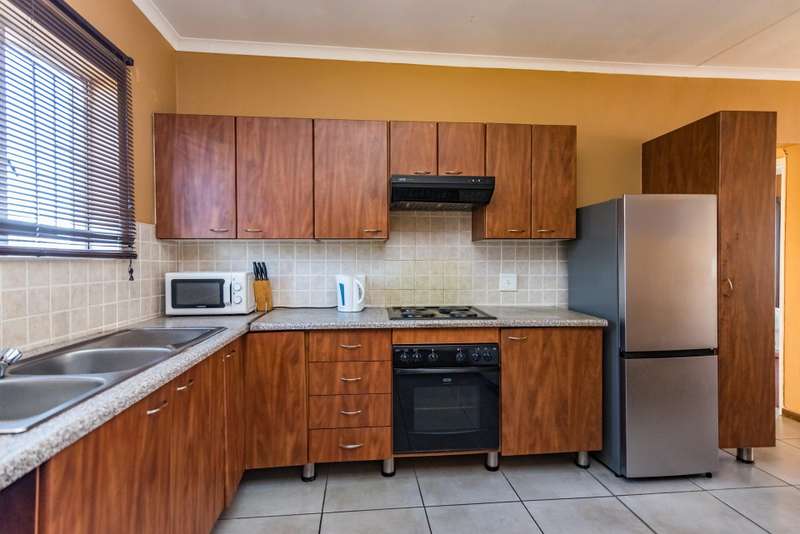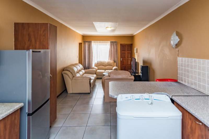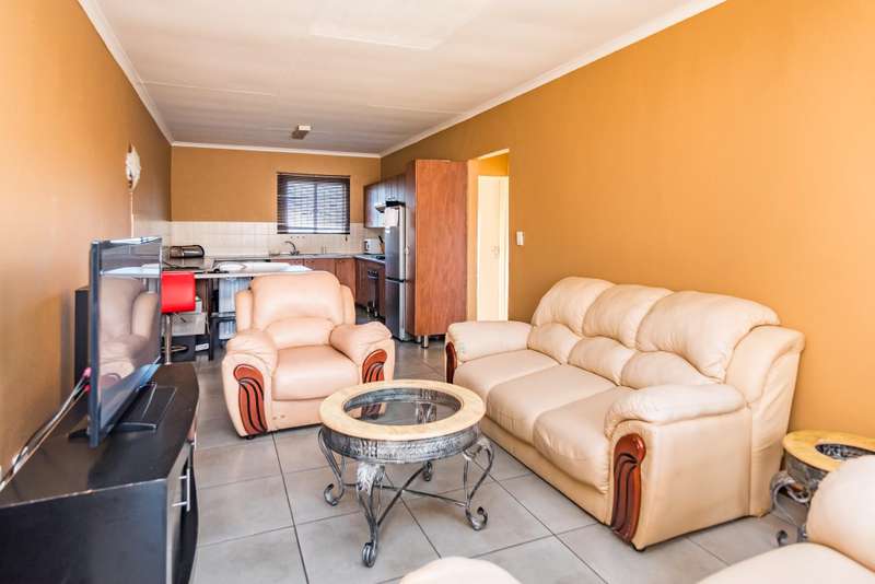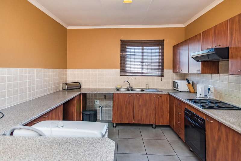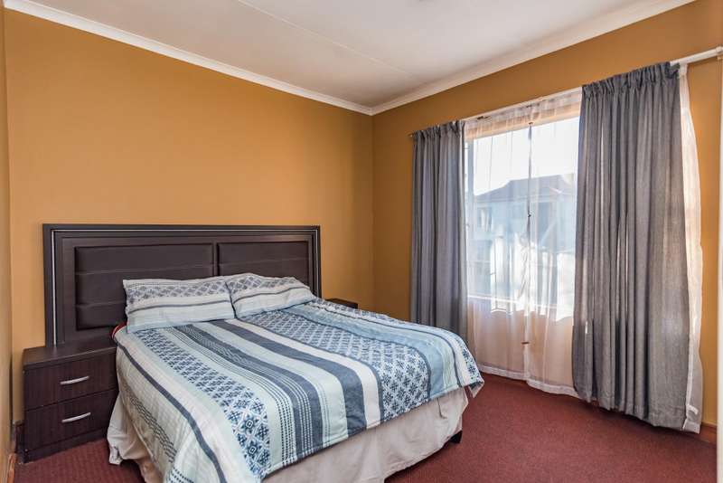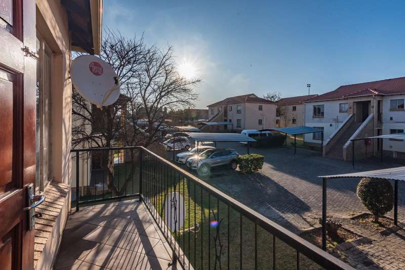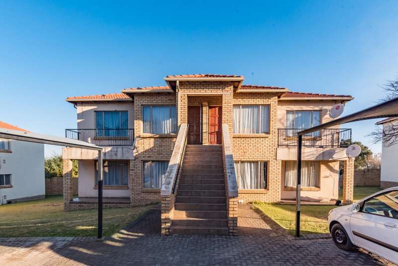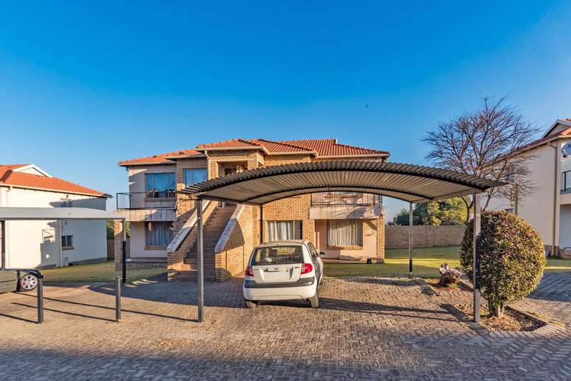 2 Bedroom apartment on 1st floor This spacious apartment is located in a quiet street, away from the hustle and bustle. Upon entering, you are greeted by a spacious open plan living area that leads out onto a small balcony. The kitchen is modern and neat, with built-in cupboards, a breakfast nook, and space for two kitchen appliances and a single door fridge. Two bright and airy bedrooms with built-in cupboards offer plenty of space for relaxation and "me time". The bathroom is fully fitted with a bath, shower, basin, and toilet. There is also a carport and additional visitor parking. The apartment is well-secured with 24-hour security, a guardhouse, and security gates on all external doors. Fibre is available, and pre-paid electricity is already installed. The communal gardens are a safe space for kids to play and ride their bikes. This apartment is perfect for an investment or for newly-weds. It is within walking distance of Dr Havenga primary school and Die Adelaar secondary school.Shopping centres are only 2km away. Open spaces for kids to play and ride their bikes Call today to arrange a viewing!