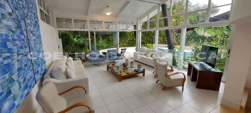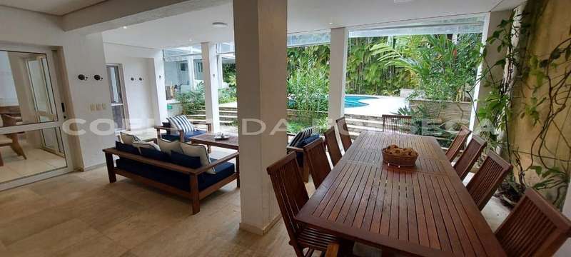 Casa envidraçada a 50 metros da praia, com bastante privacidade, porém integrada à natureza. Piscina privativa e churrasqueira a partir de suas varandas. Duas salas, sala de jantar e sala de TV com banheiro privativo (podem ser transformados em outra suíte), além de duas suítes e mais dois dormitórios. Aproveite essa oportunidade e venha desfrutar da praia mais linda e sofisticada do litoral paulista!