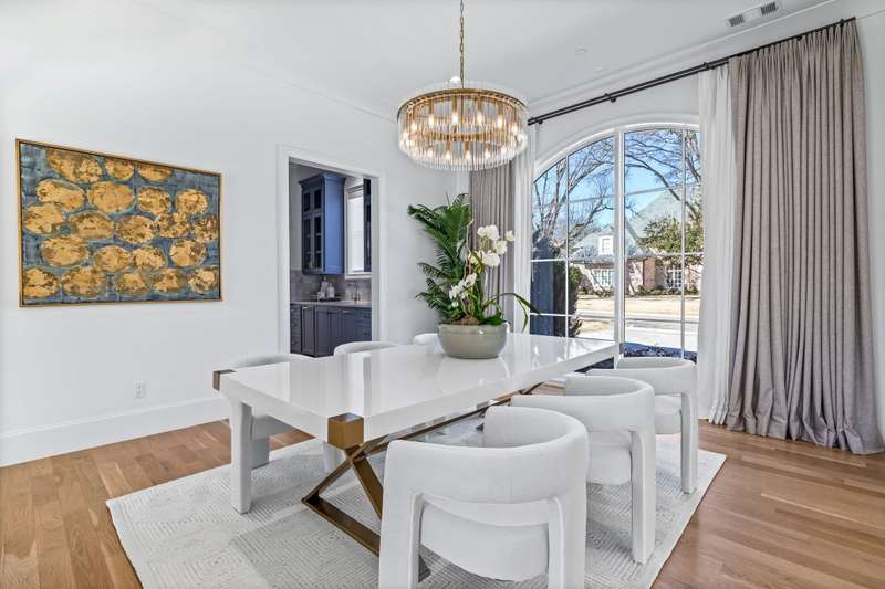 Discover refined elegance in this stunning Preston Hollow home, situated on an oversized 95x160 lot. Designed for both style and function, the open floor plan is enhanced by expansive arched windows, high-end finishes, and beautiful hardwood and marble floors. The main level features an incredible island kitchen with a Sub-Zero refrigerator and a Wolf 6-burner range, a generous guest suite, two spacious living areas, formal dining room, office, wet bar and pantry with a wine fridge, and laundry and mud rooms. Upstairs, you'll find a luxurious primary suite with its own living area, gym, massive walk-in closet, dual vanities, garden tub, and walk-in shower. 3 bedrooms with their own en-suite baths, a media room, and an additional utility room complete the second level. Step outside to a lovely backyard featuring a sparkling pool and an outdoor living area, perfect for entertaining or relaxing. Don't miss the opportunity to live in this exceptional home, walking distance to shopping and entertaining in Preston Royal Shopping Center.