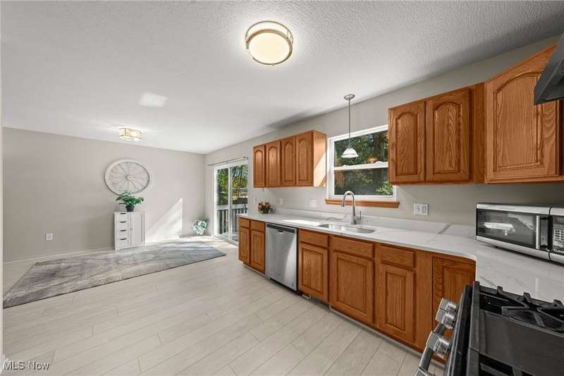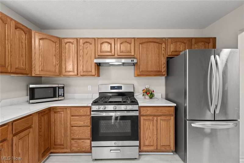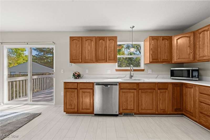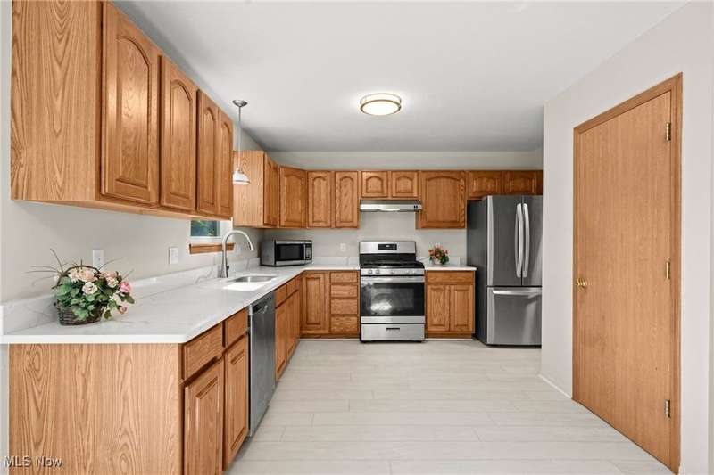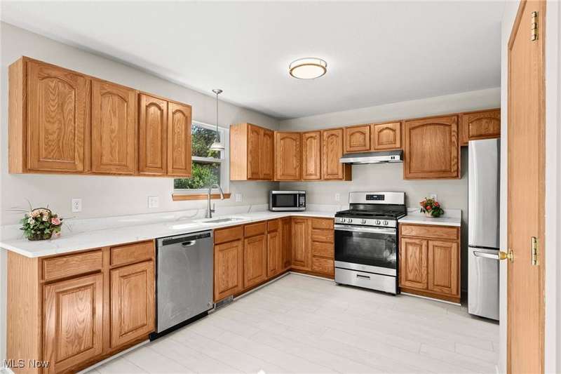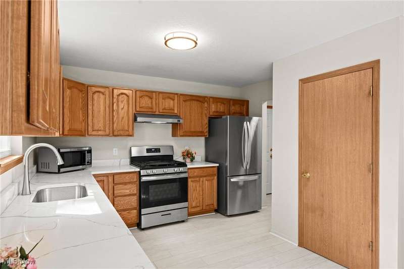 Move-in ready and full of updates! 3BD, 2BTH, 1,389 SF, built in 2009, this super nice, modern home features an open floor plan with fresh LVP flooring throughout the first floor, stairs, and second level (except bedrooms). Bright and spacious living and dining areas flow seamlessly into the updated kitchen, complete with white quartz countertops, stainless steel appliances, generous cabinetry, and a large pantry. A full bath with matching quartz countertop completes the main level.Upstairs, you'll find three bedrooms, including a spacious primary suite with brand-new carpet, a walk-in closet, and an adjoining full bath with quartz countertops. The second bedroom also offers a walk-in closet, while the third is ideal for a home office or guest room. The full basement with high ceilings provides excellent storage or finishing potential, along with a dedicated laundry area.Enjoy outdoor living with a freshly painted front porch, a rear deck, and a fenced backyard?perfect for entertaining, relaxing, or pets. Additional features include a 2-car attached garage. Prime location near Sand Run Metro Park, shopping, restaurants, and Summit Mall.Located in the Akron City School District: Case CLC, Litchfield CLC, and Firestone High School. The youngest home on the block?modern style, great location, and truly move-in ready!