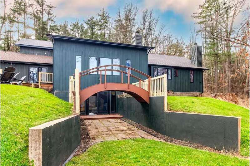 Private lakefront retreat on 12.47 acres with woods, trails, and sunrise-to-sunset water views. A new heated pool, firepit and hot tub anchor the outdoor living, while private frontage on a stocked lake invites fishing, paddling, and quiet mornings on the shore. Inside, over 4,000 finished sq ft and 5 bedrooms. A 2 story great room frames the lake with floor to ceiling windows and a wood burning fireplace. The renovated kitchen centers daily life with an oversized island, new cabinetry, granite and quartz counters, built in appliances and eating area, opening to a formal dining room for effortless entertaining. Main level living includes 2 bedrooms, highlighted by a serene primary suite with lake views, a wood burning fireplace, and a jetted tub overlooking the water. Upstairs offers 2 generous bedrooms with an adjoining full bath. The finished walkout lower level adds a large recreation room, a 5th bedroom, a full bath, and plentiful storage. 2 car garage plus a 24X24 steel barn. So much space for hobbies, entertaining, and to keep lake gear and ATVs at the ready! New playground area in addition to trails through the woods. Offered fully furnished for a turnkey experience. Documented rental history available upon request: generating 120-125k in income each year in 2022, 2023 and 2024. 2025 income predicted to be 140k. No HOA. Close to local wineries, farm-to-table restaurants, and top-tier golf. Lake Michigan beaches are within easy reach, with Warren Dunes State Park and St. Joseph about 25 minutes away. Commuting or weekend trips are simple. Approximately 1.5 hours to Chicago, 25 minutes to South Bend and Notre Dame, and South Bend International Airport. An additional 5 acre parcel is available for purchase seperately and would make the property 17.52 acres.
