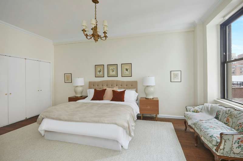 Arriving from your semi private elevator landing, once you enter apartment 8E you immediately notice the amazing scale of the apartment. The square foyer measuring roughly 10" x10" flows seamlessly into the large 27'5" x 18'4" living room (which can easily be divided into 2 sizeable rooms) with open views. The primary suite is equally well proportioned, with 2 entire walls of closets, great southern light, and a windowed ensuite bathroom. The second bedroom has a walk-in closet and the bath is accessible from the hallway. Ceilings throughout are between 10'3" and 10'7". Thru wall A/C and Washer/ Dryers are permitted with board approval. Basement storage included with the sale.