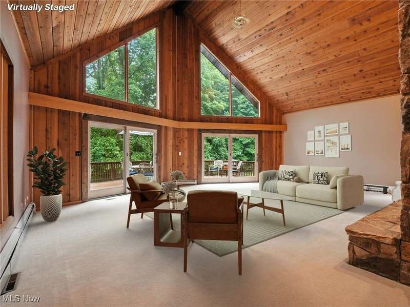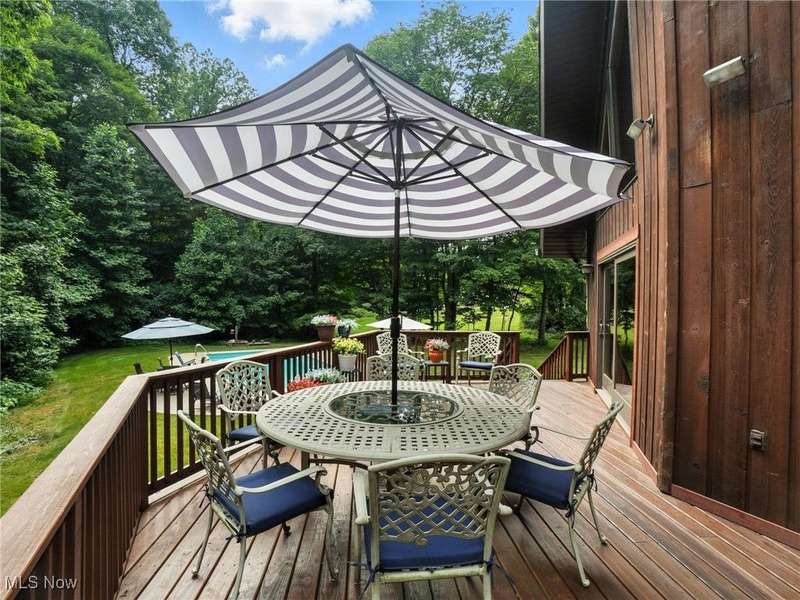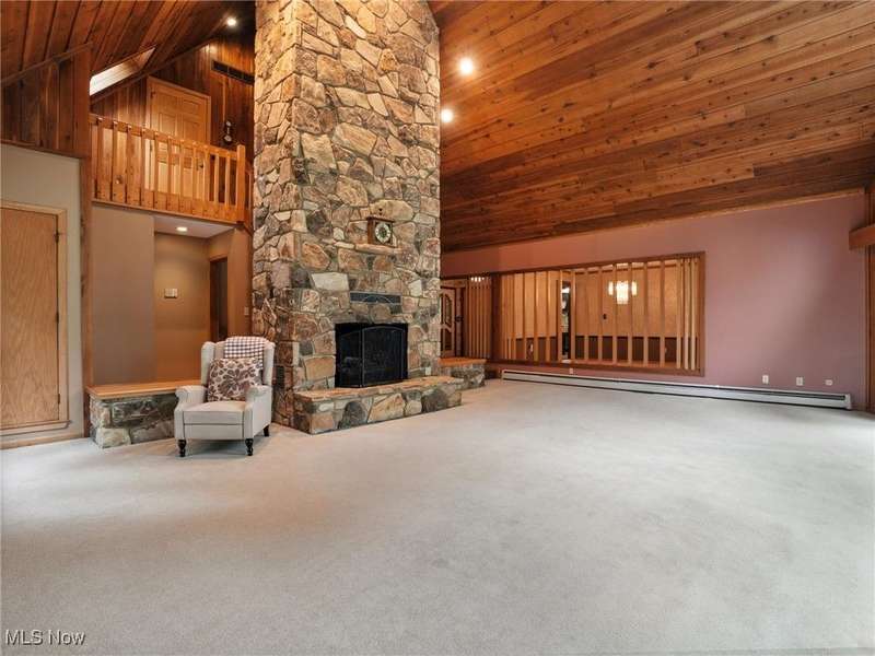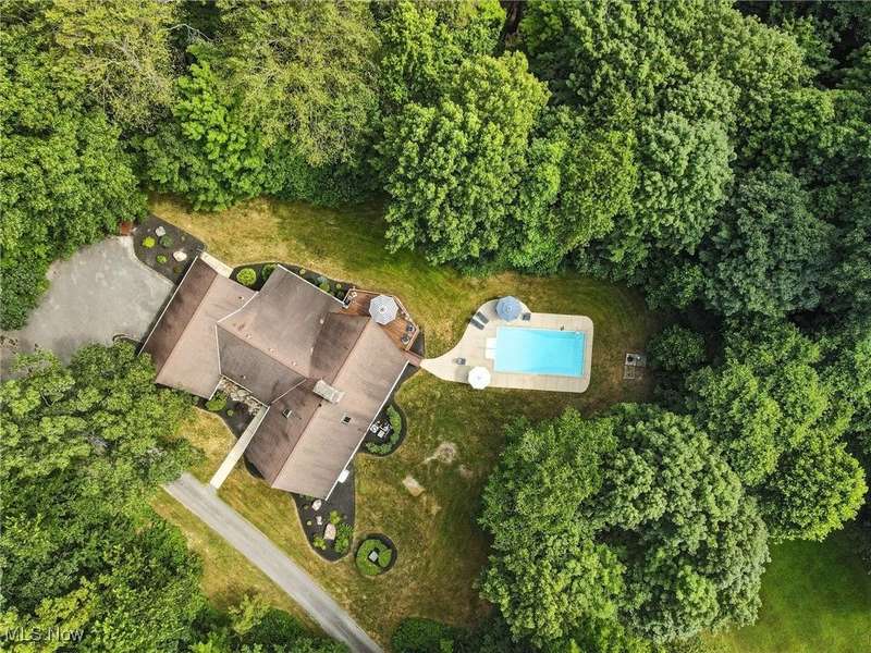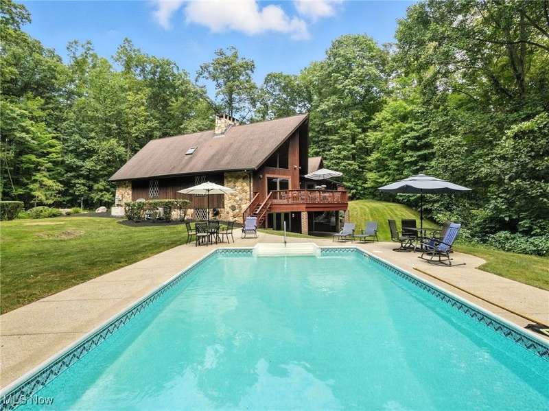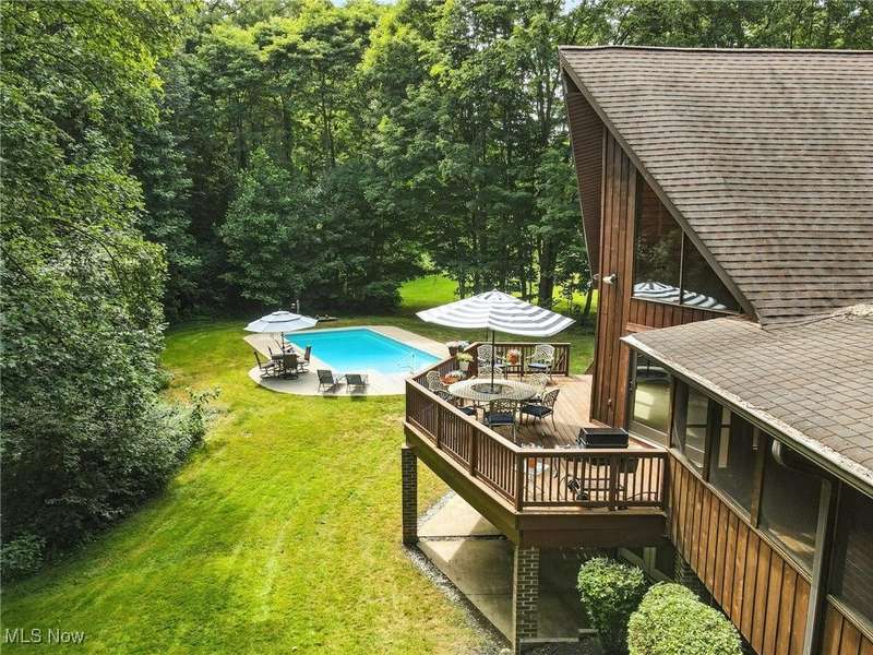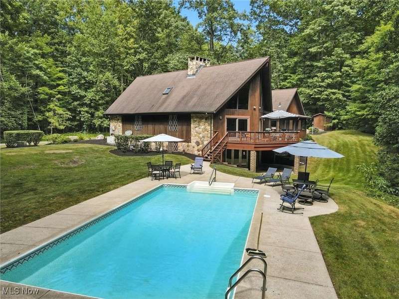 Welcome to a rare opportunity on the historic Hanna Estates in Kirtland Hills. This one-owner custom-built 4-bedroom, 2.5-bath home is situated on over 6 acres and lies within the award-winning Kirtland School District. This beautiful home blends rustic charm with modern style and features a thoughtful layout with 3 bedrooms on the first floor and a spacious second-floor primary suite. Access the quiet escape of your home by crossing over Lake County's only covered bridge! The possibilities for multigenerational living are plenty with the partially finished full walkout lower level. Two wood-burning fireplaces guarantee winter warmth - one on the main level and on the lower lever. The beautifully maintained inground pool adds to the home's appeal will full views from the lower level and upper-level deck, offering a perfect space for relaxing or entertaining. The home provides a picture-perfect winding driveway and ample parking for you and your guests. Inside you'll find a generous kitchen with movable island, recessed ceiling and formal dining area with an open view of the expansive living room that features a soaring wood-paneled ceiling. Rich in classic charm and original architectural detail that matches the history of its surroundings, this property offers timeless beauty, peaceful surroundings, and endless potential for the privacy and the quiet living you have been searching for! Leave the chaos of everyday life behind you and enjoy a journey to 9090 Little Mountain Road. Out of respect for the privacy of the property and residents, appointments are required, no drive-bys please.