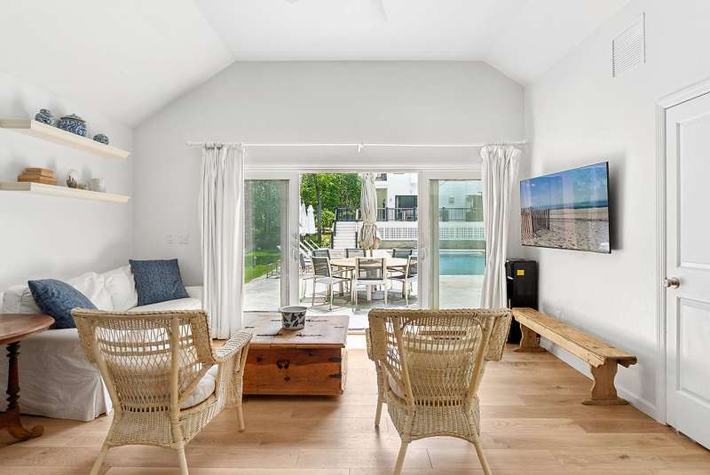 Down a long driveway, this wonderfully appointed home situated on 2.5+/- acres, approximately 8,000 sq.ft in total offers exceptional privacy and seclusion in Water Mill. The compound features a beautiful main house, a guest cottage, and a pool house, this newly-updated traditional offers 5 bedrooms and 8.5 baths. The main house features an oversized gourmet kitchen with stainless steel appliances with an open floor plan to the spacious living room with a fireplace. The dining area features several French doors leading to the deck, which overlooks the pool area. Additionally, the main floor features a den with a fireplace, powder room, and a full bath with access to the backyard. The second floor features 2 primary suites. One features a fireplace, access to the balcony, a spa bath with a floating tub, and a 6-foot shower. The other spacious primary suite also features balcony access. Two additional ensuite bedrooms and a laundry room complete the second level. The 1900+/- sf finished lower level with 10ft ceilings features a large recreation room with a kitchenette, game/playroom, gym, a bedroom, full bath, and a laundry room. Additional and both separate, the 370 +/- sf cottage offers an office, yoga room and a full bath. The 370+/- sf pool house features a lounge, kitchen, laundry, and full bath, both with storage space on the lower level. The private and quiet backyard with an extensive blue stone patio surrounds a heated gunite pool with plenty of space for entertaining. An oversized 1.130 sq.ft 3-car garage and an elevator shaft, all ready for an elevator installation, completes this lovely Hamptons home complete this lovely Hamptons home. Nestled between Water Mill and Southampton, just a short distance to ocean beaches, and moments away from top-tier Hamptons boutiques and restaurants, this home offers convenience and privacy. Listing ID: 907740