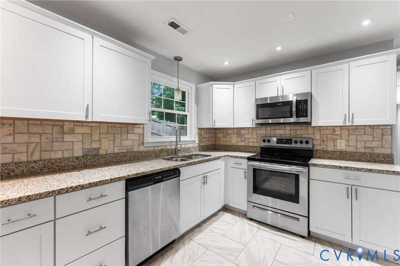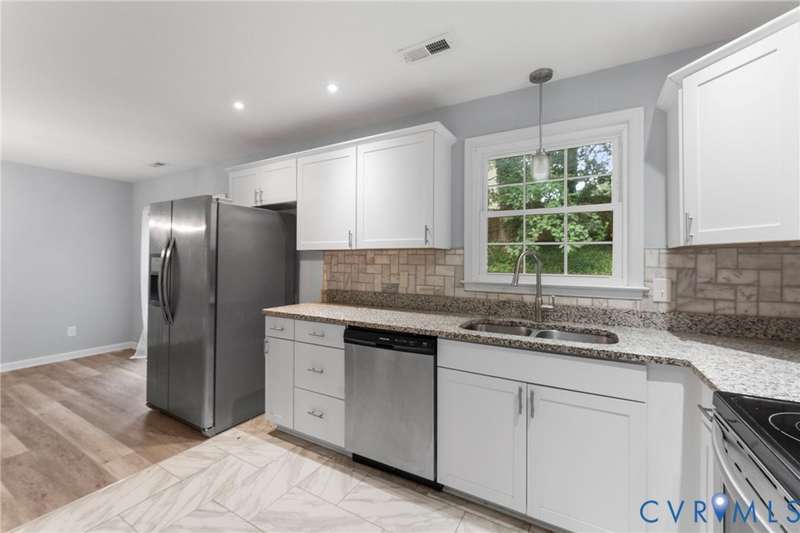 Welcome home to this charming and move-in ready ranch at 3800 Grizzard Drive. Tucked away on a quiet, partially wooded corner lot, this home offers the perfect blend of comfort and convenience. Step inside and be greeted by a bright and open floor plan, featuring brand-new LVP flooring in the living and dining rooms and new carpet throughout the hallway and all three bedrooms. The entire home has been refreshed with a coat of new paint, creating a clean and welcoming atmosphere. The kitchen and bathrooms were beautifully renovated in 2022, boasting sleek granite countertops and stainless steel appliances that are all included with the home. This home has also been updated with efficiency in mind, featuring a new high-efficiency heat pump (2022) and new high-efficiency vinyl windows (2022), ensuring your comfort year-round. Situated on a spacious 1/3-acre lot, you'll love the peaceful setting while still being just a short drive from Hull Street, Midlothian Turnpike, and Chippenham Parkway, offering easy access to shopping, dining, and major roadways. Charming and Updated Home in a Quiet, Convenient Location.