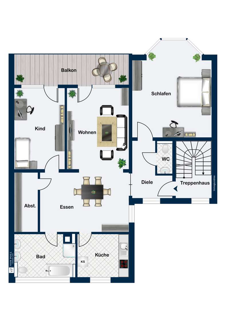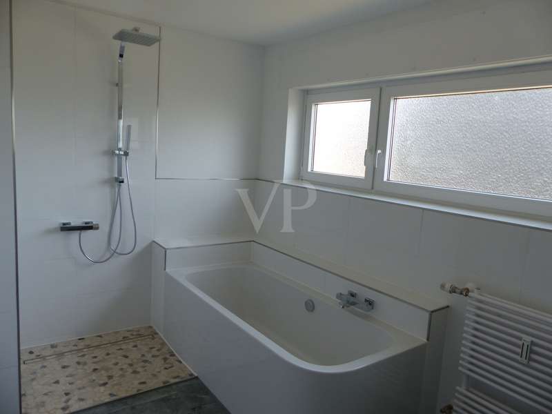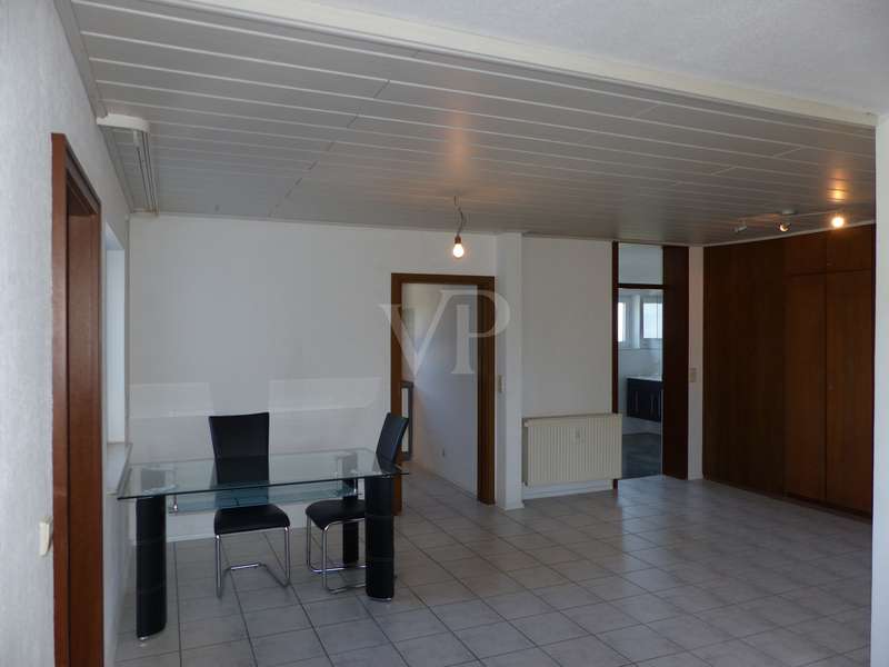 This well-kept apartment, built in 1976, offers a living space of approx. 106 m² and impresses with its well thought-out room layout. The apartment comprises a total of 3 rooms, including two bedrooms. The bathroom was extensively modernized in 2024 and impresses with up-to-date sanitary installations and contemporary design. The living spaces are well-maintained and have good lighting thanks to the double-glazed plastic windows, which were replaced in 2009 and are also energy-efficient. A fitted kitchen by Nolte is timeless and functional, giving the cooking area an attractive touch. The central oil heating system, which was installed in 2004, provides cozy warmth in all rooms. In addition to the heating, an extension was added to the house in 1995 to provide additional space and more comfort. The apartment has two balconies that invite you to linger. A cellar room, a utility room and a parking space in front of the house round off the offer.