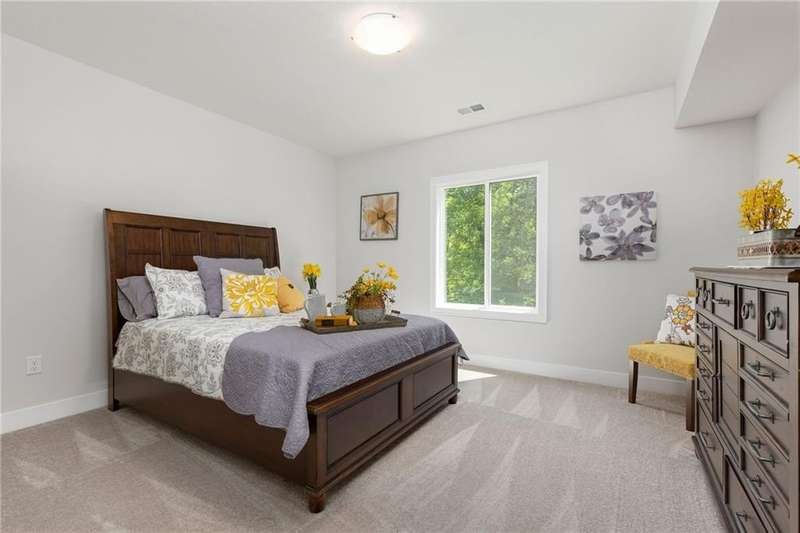 Welcome to Harding Homes popular "Laurel" model home. Upgrades galore on this beautiful treed greenspace lot. This homes has it all & more!! The vaulted ceiling and spacious open concept living invite you right in. White oak hardwood floors flow throughout the main level. Large island to entertain all of your family & friends. Custom cabinets, walk-in pantry, SS appliances & granite perfectly complete the kitchen. Primary suite features a large trimmed accent wall, oversized walk-in closet, and en-suite bath with dual vanities and walk-in shower. Primary closet connects to laundry room! Additional bedroom/office is also on the main level with full bath. Huge lower level with family room, 2 additional bedrooms, full bath & plenty of storage. Extra deep garage w/XL garage door, high efficiency furnace & AC. Doesn't get any better than this! Come tour it today!!
