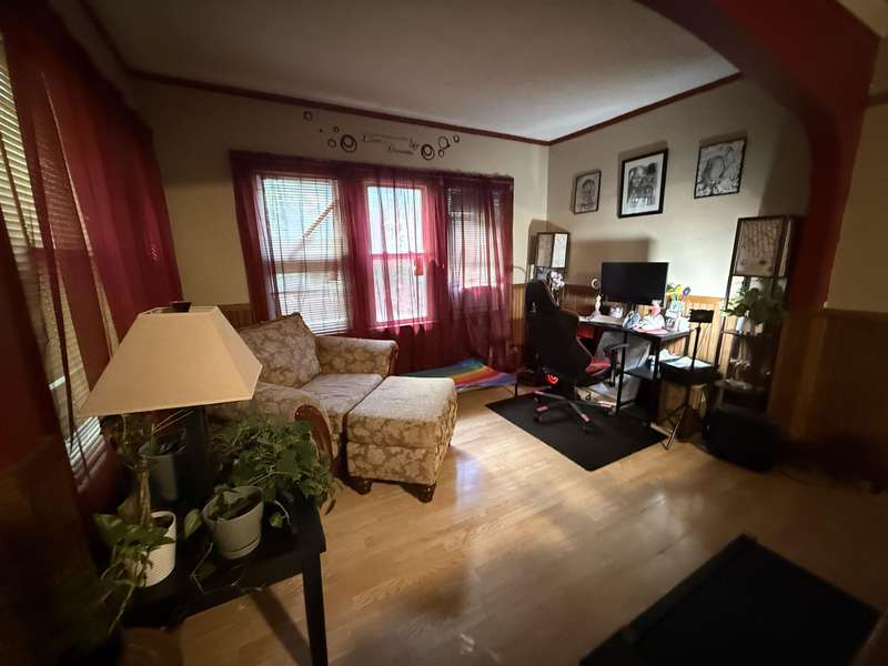 This well-maintained 1.5-story home features a main floor master bedroom, 1.5 baths, and a finished basement offering extra living space. Enjoy the spacious formal living and dining rooms, perfect for entertaining. A 1.5-car garage accessible from the alley adds convenience. With a clean, move-in-ready interior, this home is a great opportunity for first-time buyers or an investment with great potential.