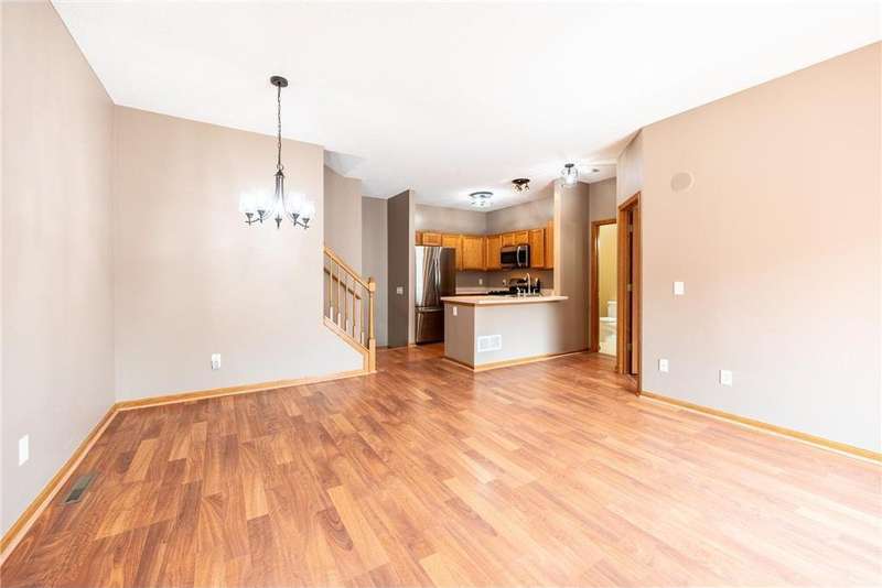 Welcome home to this beautifully updated townhome with modern touches and sunlit spaces featuring new flooring and thoughtful upgrades throughout. The main floor offers a bright and open layout filled with natural sunlight. You'll love the open floor plan where you can enjoy cooking in the kitchen, complete with stainless steel appliances—including a newer refrigerator—rich wood cabinetry, and updated light fixtures. The informal dining area flows seamlessly into the spacious living room, where a gorgeous stone-surround gas fireplace creates the perfect cozy focal point. Step outside to the sun-drenched balcony—ideal for morning coffee or evening relaxation. Upstairs, you'll find two generously sized bedrooms and a full bath. The primary suite features a walk-in closet and a convenient walk-thru to the bathroom. The lower level includes easy access to the attached garage, additional storage, and a utility/laundry room with newer mechanicals—A/C (2025) and water heater (2024). This move-in ready home combines comfort, style, and convenience—don’t miss your chance to make it yours!