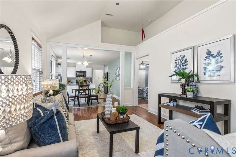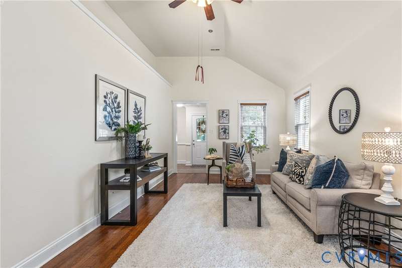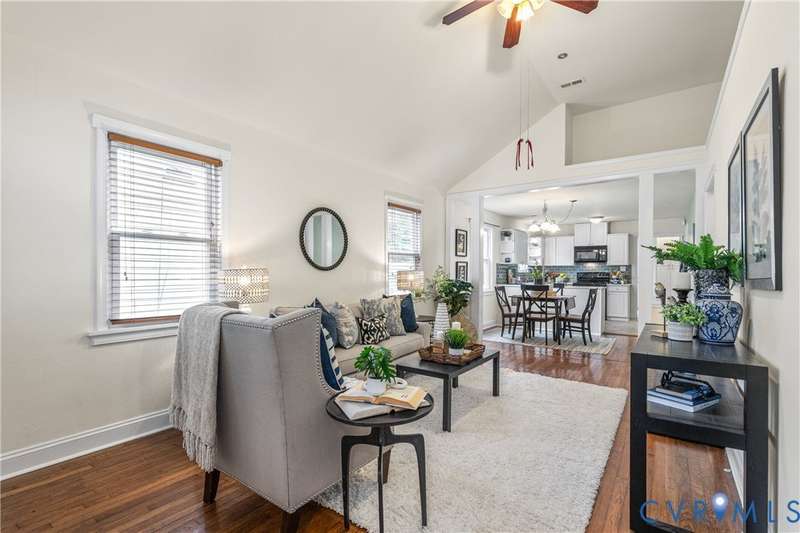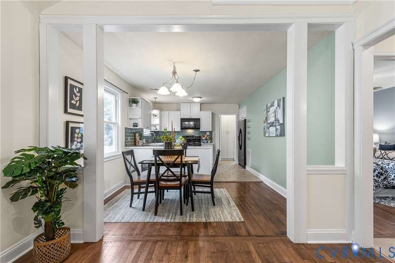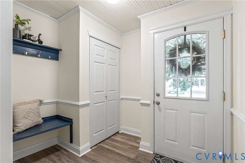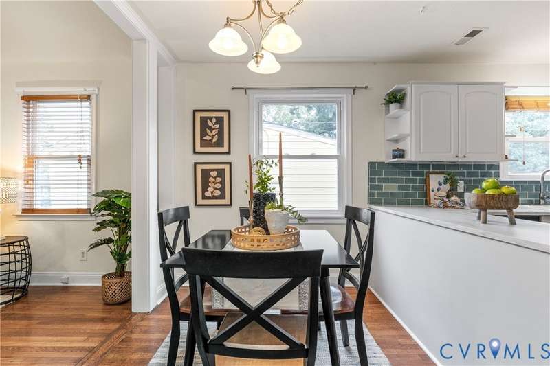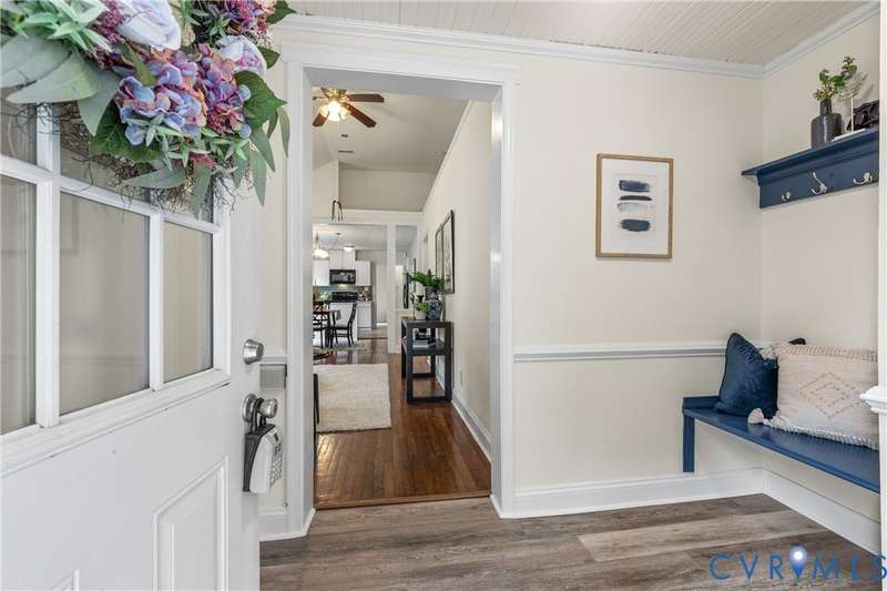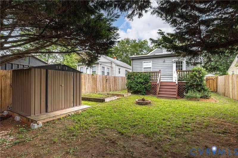 Welcome to this charming, cottage-ranch style home beautifully maintained 3-bedroom, 1-bath cottage-ranch with 1,150?sq?ft of one floor living space! Step inside & feel instantly welcomed by warm finishes & thoughtful design. The foyer has LVP flooring, a built-in bench seat, coat closet, chair rail, & crown molding, an inviting welcome into the home. The living room is a bright & airy space with hardwood floors, a ceiling fan, vaulted ceiling, & open layout that connects effortlessly to the dining room & kitchen. Whether hosting holiday dinners or enjoying quiet evenings, the flow feels natural & uncluttered. The dining room enjoys rich hardwood floors, a chandelier & great natural light, beautifully bridging the living area to the cheerful kitchen. The kitchen features tile flooring, crisp white cabinetry, sleek black appliances, including a smooth-top drop-in stove, microwave, dishwasher, refrigerator & a nice large double-bowl sink. A lovely primary bedroom with hardwood floors, double door closet, & ceiling fan with lights creating a restful atmosphere. Two additional bedrooms also feature hardwood floors, double-door closets, and ceiling fans making for a cozy, well-appointed space for family or guests. A spacious laundry room offers tile floors, cabinetry, a linen closet, and a handy built-in drop zone, providing organization and easy daily use. A private backyard designed for outdoor enjoyment with a privacy fence, storage shed, raised planting beds and a firepit area. Ideal for gardening, gathering around the fire, or simply relaxing. This home is perfect for families, downsizers, or anyone seeking a comfortable, low-maintenance lifestyle rooted in charm and thoughtful design. Whether you're hosting loved ones indoors or enjoying quiet summer evenings outside, this inviting cottage-ranch offers the perfect blend of form & function.