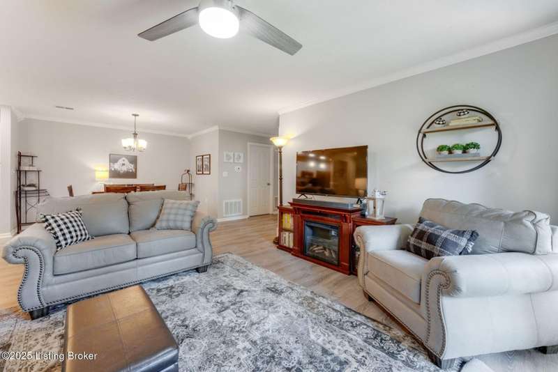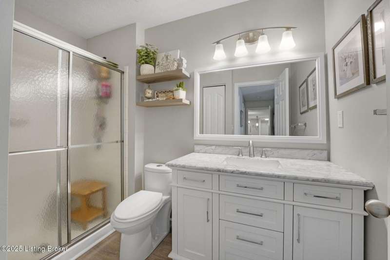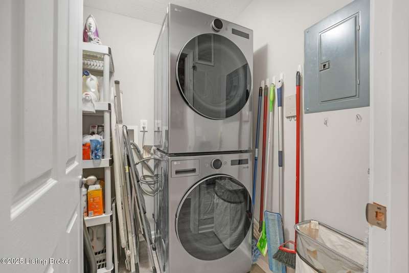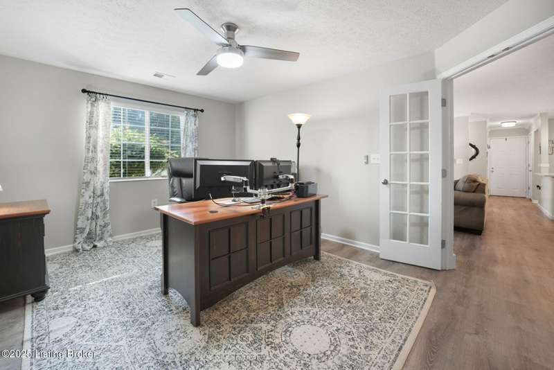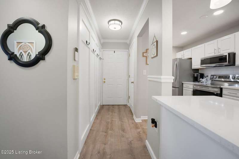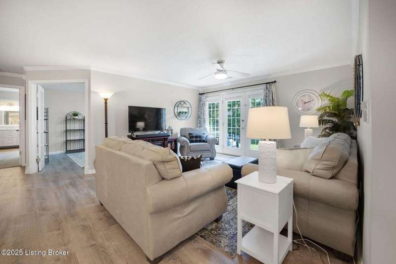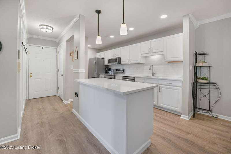 Main Floor Condo Living at Its Finest! Welcome to this beautifully updated first-floor, east-end condo featuring an attached garage and a designated parking space. Inside, you'll find a custom trim work creating a warm and inviting entry leading to the fully renovated kitchen with quartz counters, white cabinets, and stainless appliances. The open-concept layout flows seamlessly from the kitchen's custom peninsula into the dining area and living room, which opens to a private patio with serene tree-line views. The primary bedroom is drenched in natural light and offers two walk-in closets and ensuite updated bathroom. The second bedroom is spacious and has access to the second full bathroom with tasteful updates. There is a versatile office enhanced by French doors—perfect for working from home. Completing the main floor is a laundry room with a newer stackable washer/dryer unit to remain. The unit offers ample storage throughout, including an additional secured storage closet conveniently located just outside the front door. Enjoy resort-style amenities right outside your door: a pool, fitness center, tennis courts, and clubhouse. With modern upgrades, thoughtful design, and single-level convenience, this condo is the perfect blend of comfort and style