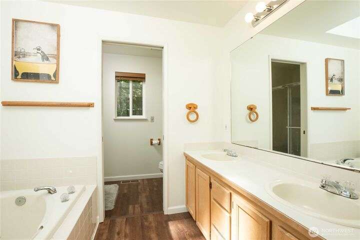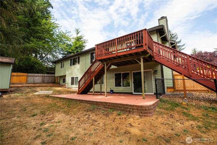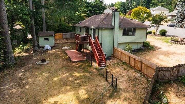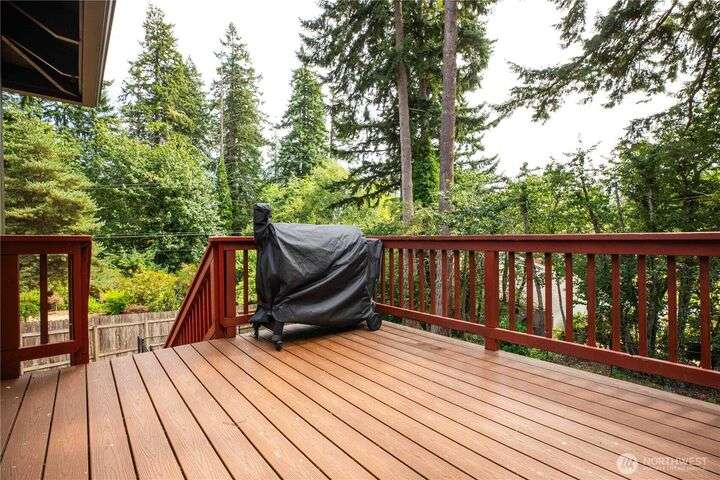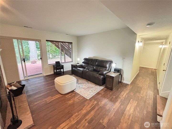 Near Everything, Yet Quietly Tucked Away. Come home to comfort in this inviting Poulsbo home, perfectly located near Silverdale, Bangor, ferries, and highway access. The main-level primary suite offers easy living, while downstairs provides added flexibility with two bedrooms, a full bath, and a second living space. New vinyl plank flooring brings warmth and cohesion throughout. A fully fenced, tree-lined yard with a fire pit invites relaxation or entertaining - plus convenient pet access from both levels. Enjoy distinct spaces for dining, cooking, and lounging, while still feeling connected. Tucked on a quiet cul-de-sac, this is where life slows down just enough.