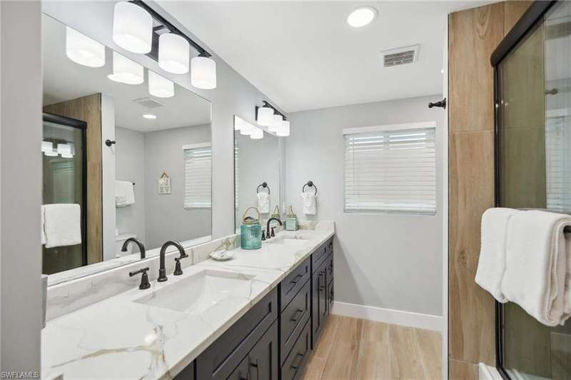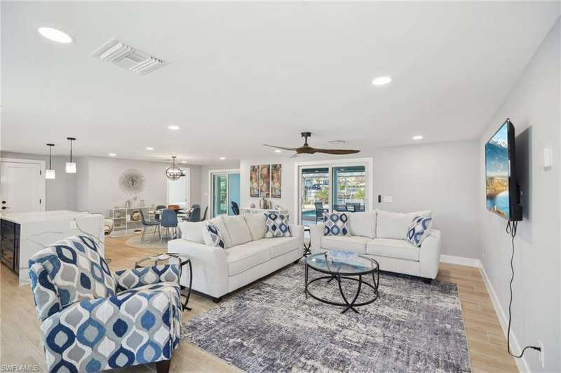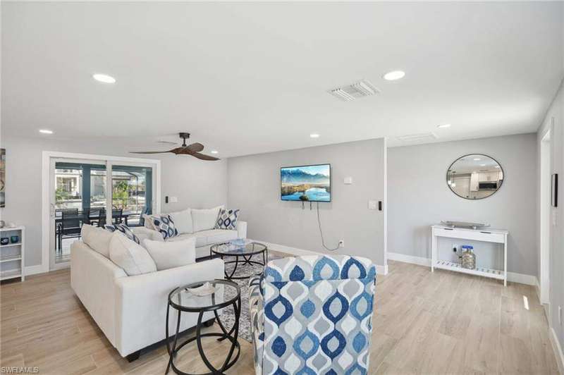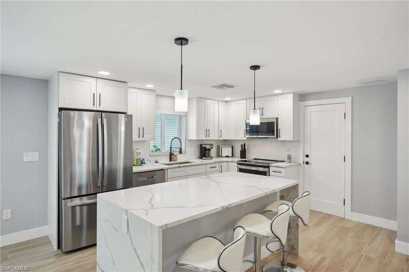 Priced for a quick sale! Amazing views of the intersecting canals from this 3/2 pool home on Ft Myers Beach. No stone was left unturned in the remodel of this gorgeous home only steps to the white sands of the Gulf. The interior of this home features the desired split floor plan, wood plank porcelain tile, custom tiled baths, and again, amazing views! Everything is new from the ground up, including electrical, AC, plumbing, roof and so much more! The open kitchen has bright white shaker two toned cabinetry with stunning quartz counters custom backsplash and is perfect for entertaining! Relax outside by your heated pool and enjoy the fishing, wildlife and serenity. Being sold turnkey furnished, you can begin enjoying the Florida lifestyle today or the benefits of the perfect rental investment.