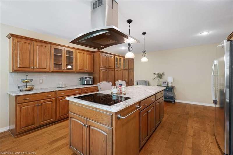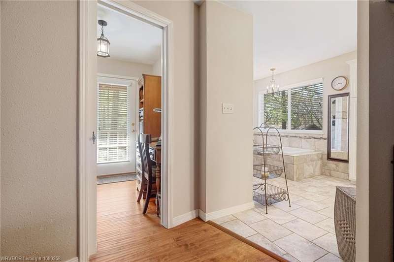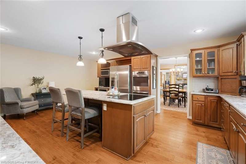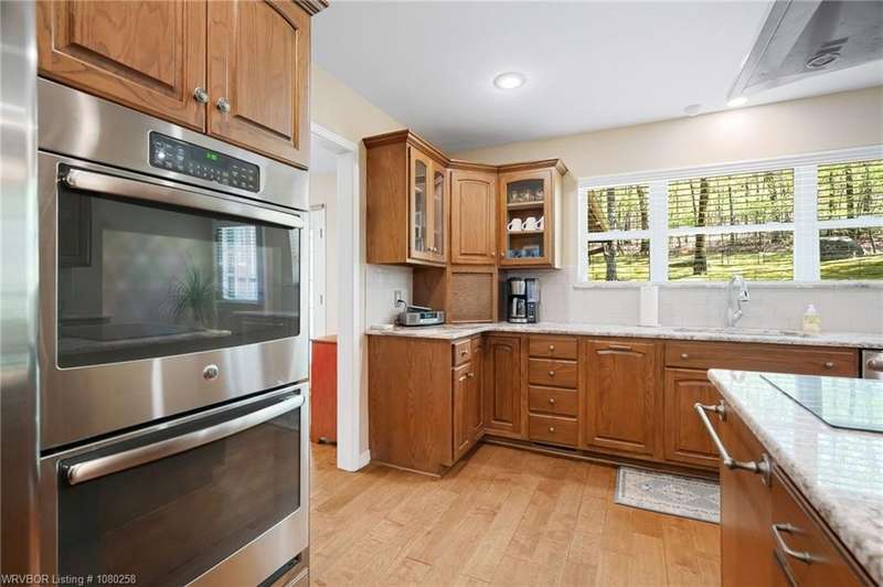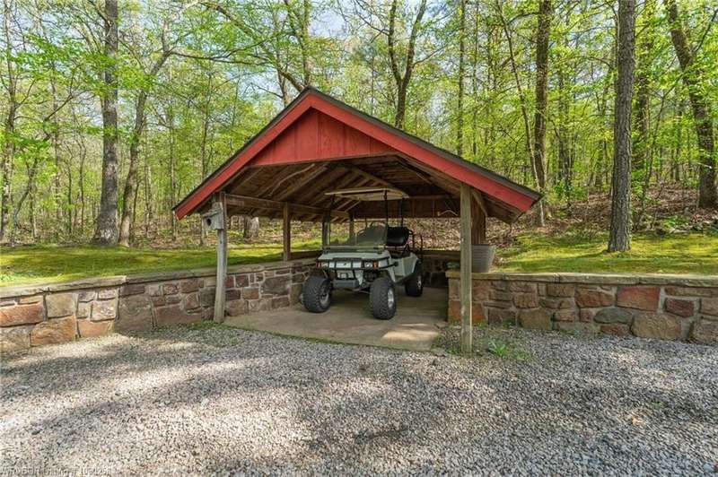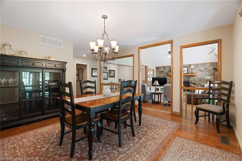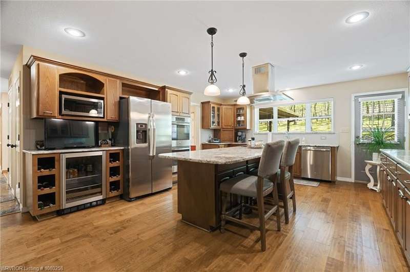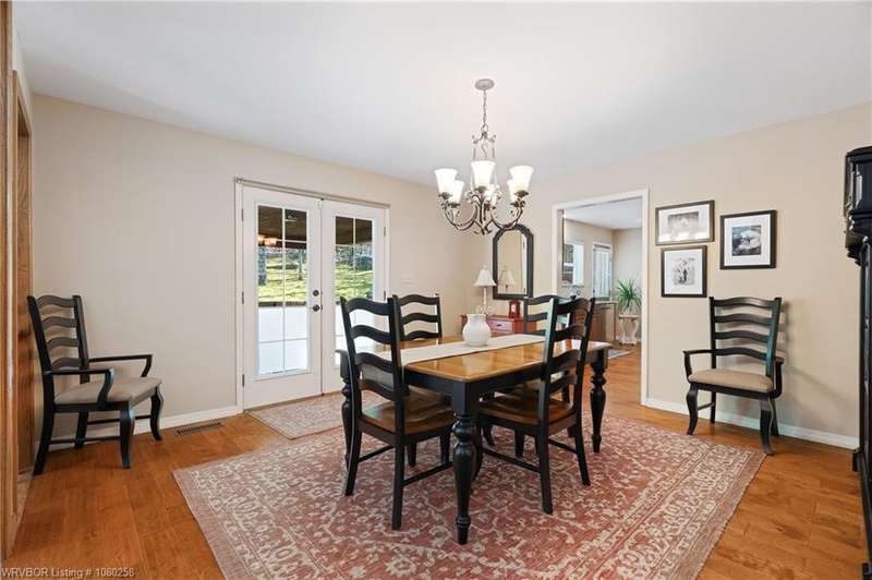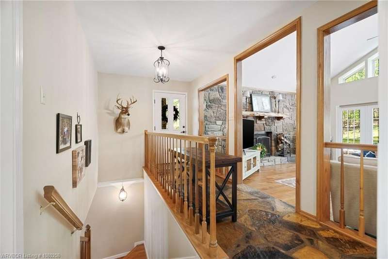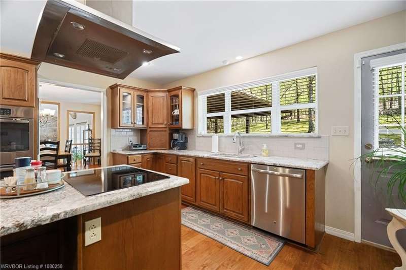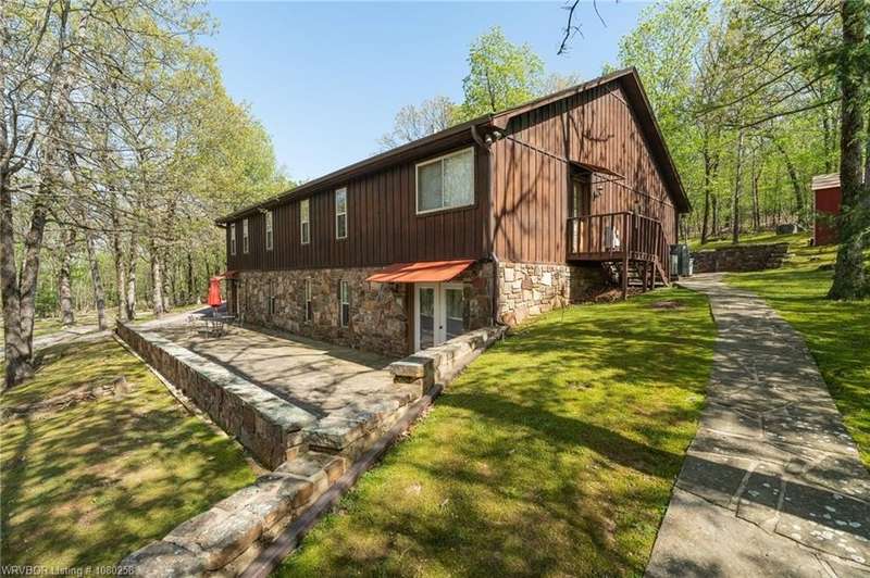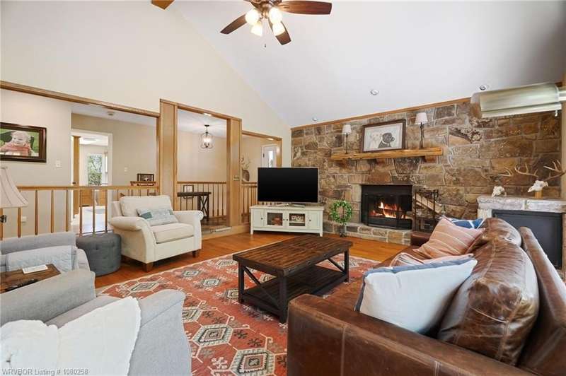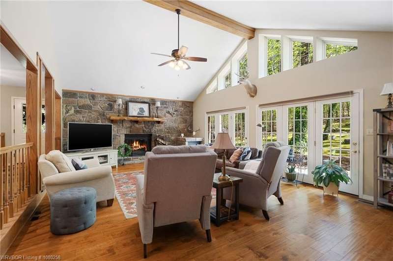 Experience the charm of a European farmhouse-style residence that effortlessly blends rustic elegance and modern comfort within its two-story rock and cedar structure, set on 20 acres of meticulously landscaped park-like grounds. An enchanting 1.7-acre stocked pond invites serene moments and wildlife observation, while a spacious carport and a detached 4-car shop/garage cater to enthusiasts and storage needs, with unique custom rock work throughout by the talented artisan Elmo Kimmons adding character to the exterior. Inside, the interior showcases flagstone and engineered hardwood floors. While vaulted ceilings adorned with transom windows fill the space with natural light. The cozy living area boasts a stunning wood-burning fireplace, complemented by a charming craft/hobby room that beckons creativity. Remodeled bathrooms exude stylish designer aesthetics, the primary features dual vanities, a jetted soaking tub, and an indulgent walk-in shower. The kitchen captivates with warm tones, natural granite & quartz countertops, sleek stainless steel appliances, and elegant solid oak cabinetry with built-in storage from floor to ceiling. This exceptional farmhouse is designed for comfort, offering a tranquil primary suite along with a guest bedroom upstairs, while the lower level encompasses two additional bedrooms, a full bathroom, a rec room/second living room with serving bar, and a versatile flex space that can also serve as a fifth bedroom. Outdoor living flourishes with a charming covered patio adjoining the dining area and a rock terrace the full length of the home just off the rec room, both providing enchanting vistas and a perfect setting for gatherings and entertaining. In addition there is over 600 square feet of unfinished acclimated storage, the possibilities are endless. Just off Highway 10 West, this remarkable property offers a rare opportunity to embrace idyllic country living while enjoying convenient access to the Greenwood School District.