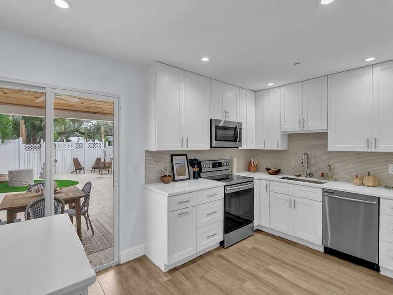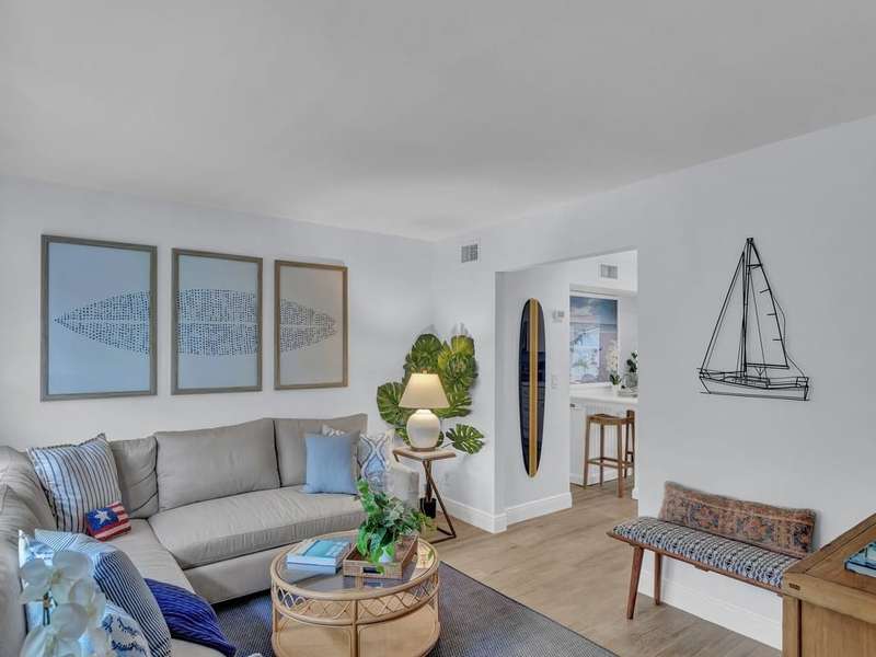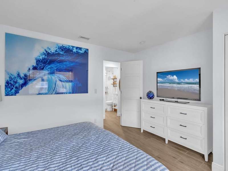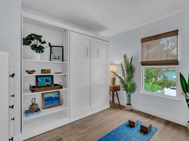 Outdoor living at its finest! Large back yard with fire pit, grill, and outdoor shower for lounging day or night. Remodeled townhouse steps from Cardinal Drive in the heart of Vero Beach's Beachside town. Walk or bike to the shops, restaurants, and bars. King in the Primary Bedroom and Murphy bed in the guest room. Room sizes are approximate and subject to change. Property and contents represented in photos, subject to change.