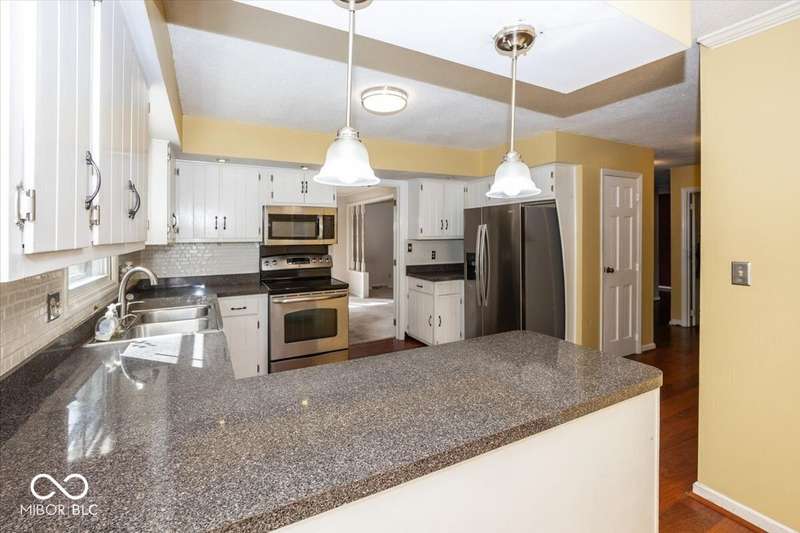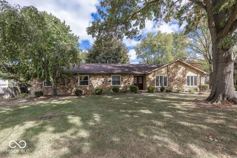 Lovely large stone ranch with 4 bedrooms, 2.5 baths situated on a prime .55 acre cul de sac Carmel lot with beautiful trees and grasses convenient to schools, shopping, restaurants, travel and popular Broookshire pool and golf course. Loved and enjoyed by current homeowner for over 25 years and awaiting your vision..the house features 4 large bedrooms with generous closet space, a primary bedroom with a sitting room (and fireplace!) huge family, living, and dining rooms. Oversized two+ car side-load garage with service door and shelving. Other special features include cedar closet, jacuzzi, newer tub and toilets. Updates include: Furnace 2025, stonework/chimney tuckpointed 2025, asphalted driveway 2024, water heater 2024, patio door 2024, mostly new windows 2022, roof 2015, AC 2013. Utility averages: Duke Electric $170; Vectren Gas $90, Carmel Utilities (sewer, water, trash) $95.