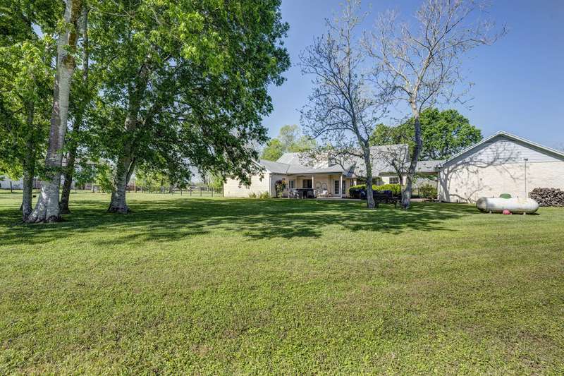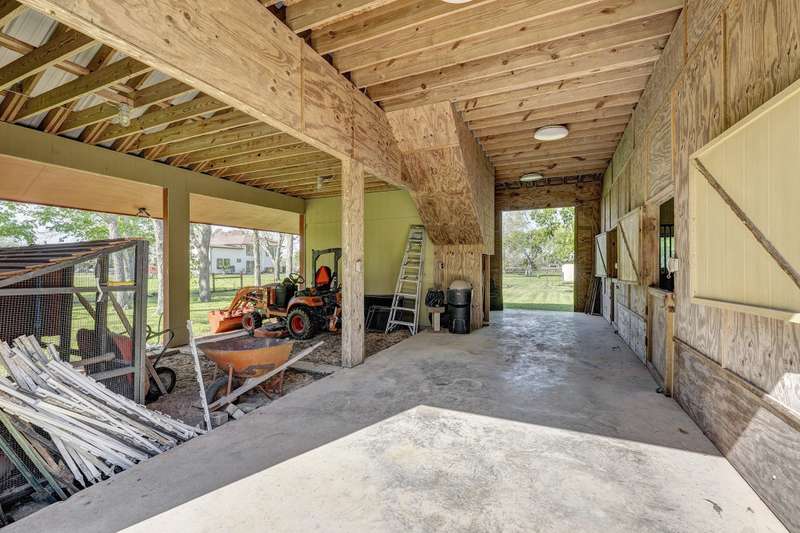 Welcome to your sanctuary in Fulshear, a charming country retreat nestled on 2.66 acres (CAD)! This beautifully updated 3-bedroom, 2.5-bath home offers comfort & functionality. A gated entrance welcomes you, setting the stage for a peaceful retreat. Inside, the freshly painted home features a spacious kitchen w/abundant counter space, perfect for cooking & entertaining. The family room is warm & inviting, complete w/brick wood-burning fireplace, built-ins, & large windows overlooking scenic backyard. A 3-car garage provides ample storage, & the barn is a dream for equestrian enthusiasts. It includes 3 stalls (w/room for 2 more), a tack room, electricity, water, & concrete floor. Upstairs, an unfinished room w/electricity offers endless possibilities. Property is mostly cleared, w/mature trees at the back for added privacy. Horse/chickens allowed, making this an ideal homestead for those seeking country living w/modern conveniences. Make this Fulshear gem your own! All info per Seller.