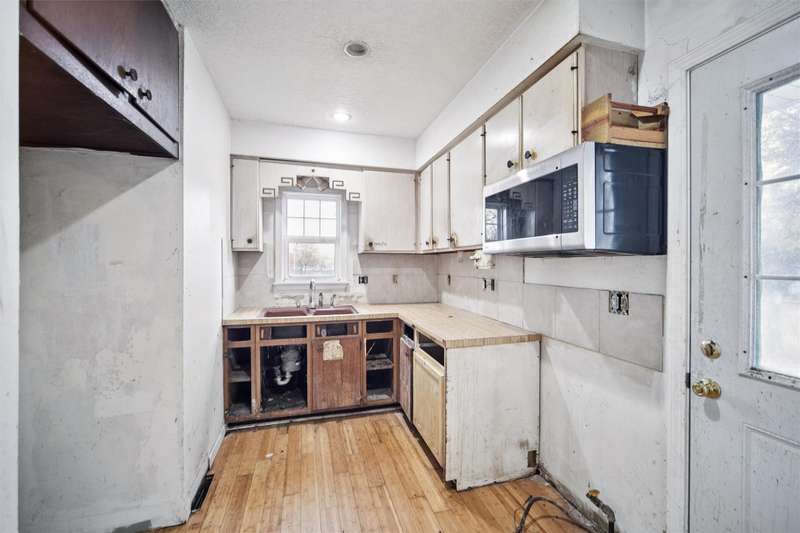 Investor Buyer Property! 3 Bedroom Bungalow. Walking distance to Grade School. Updated vinyl siding, windows and hardwood floors. One car detached garage & shed. Great Potential & Investment. Sold As Is Condition.