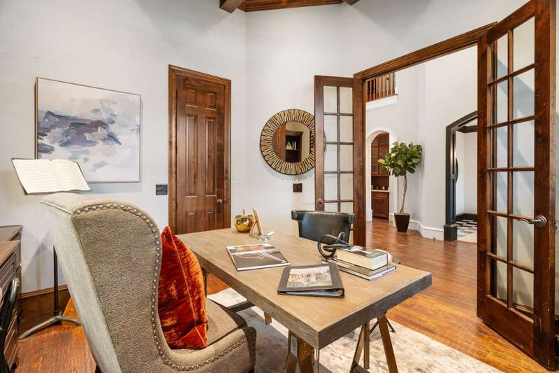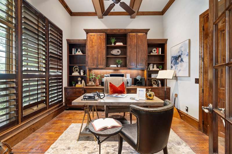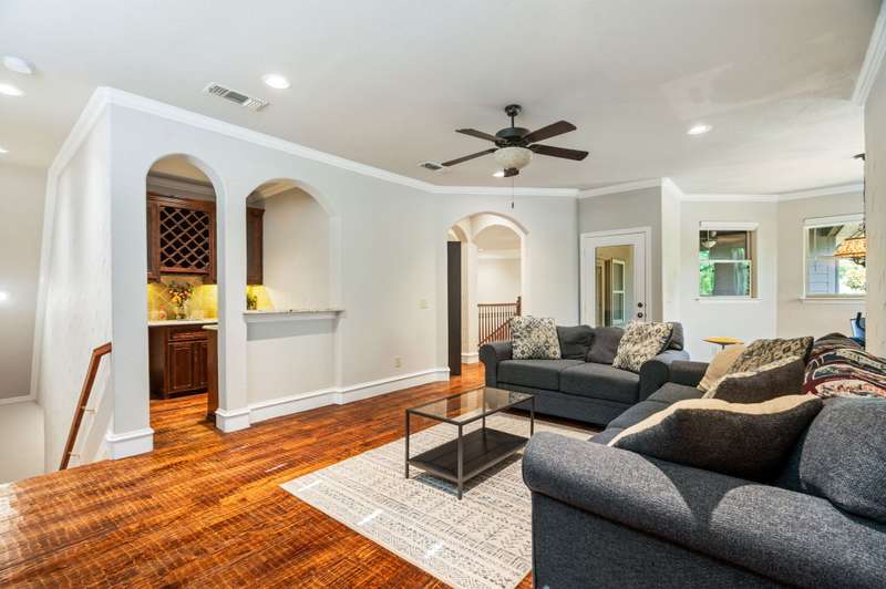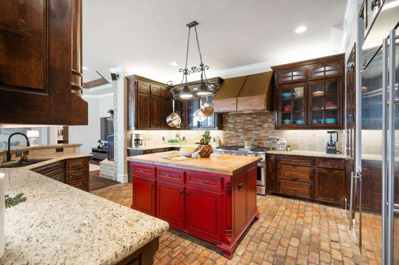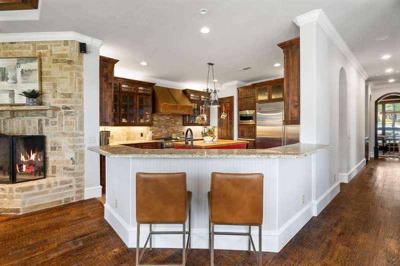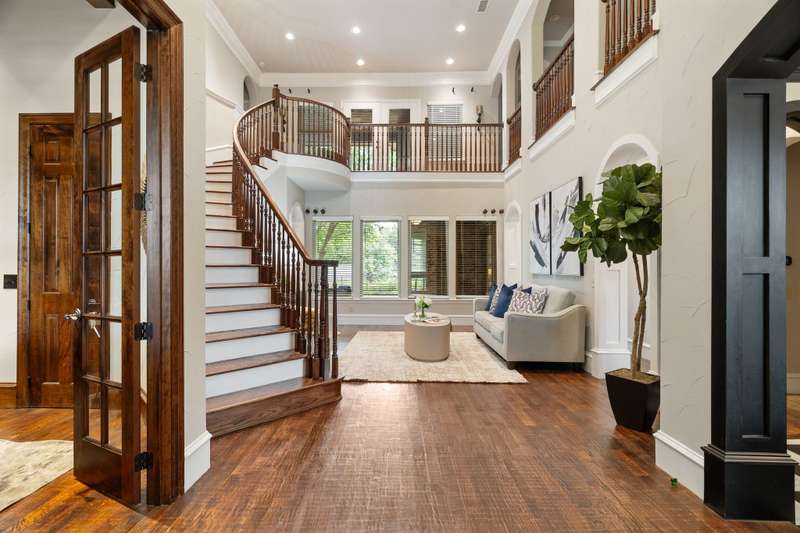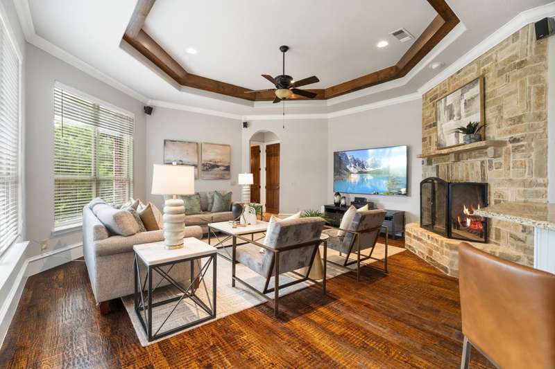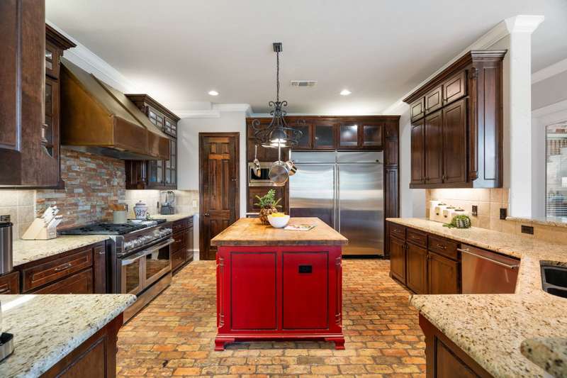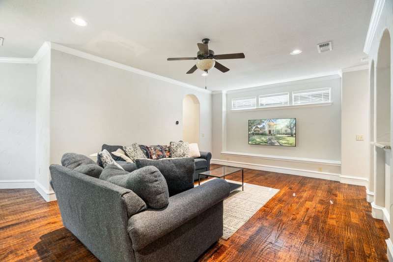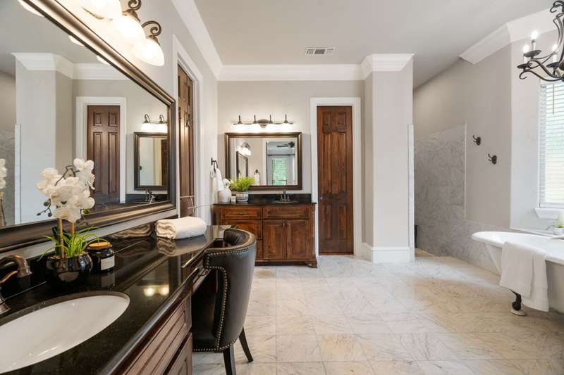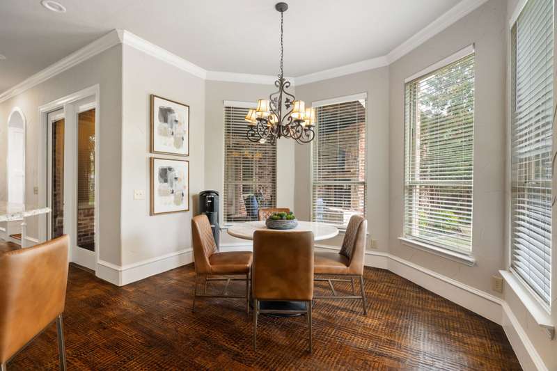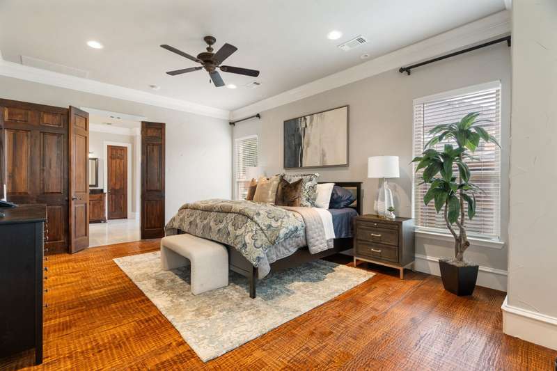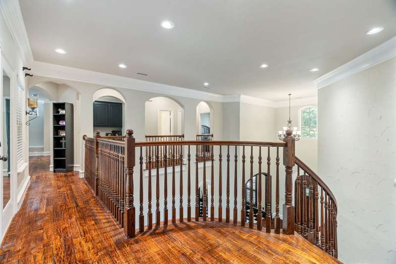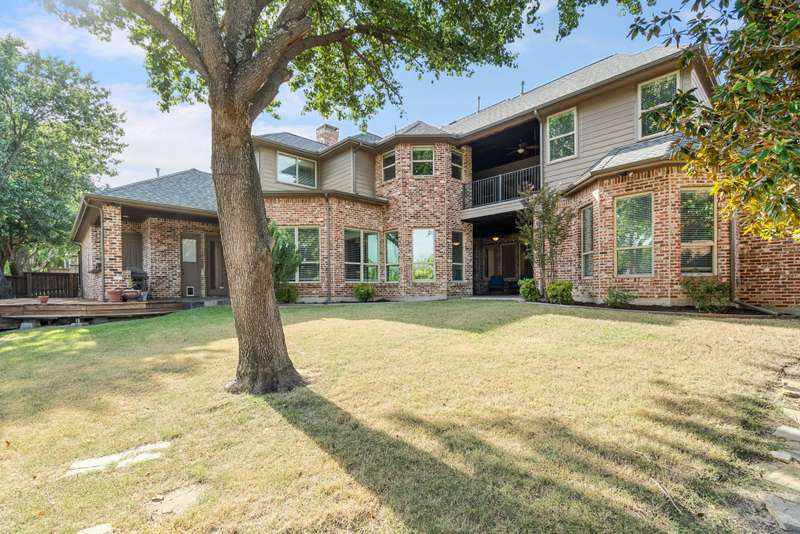 CUSTOM-BUILT LUXURY in the Bluffs of Winding Creek! Staged to perfection, this 5 bed, 7 bath (5 full 2 half) 4,638 SF home is loaded with upgrades. Gorgeous hand-scraped hardwood floors flow throughout both levels. The kitchen is a chefs dream with GE Monogram commercial appliances, including a built-in double commercial fridge, a huge 6 burner gas range with custom copper hood, brick flooring, center island with butcher block top, tons of cabinetry and a large pantry. Primary suite down features Carrera marble, soaking tub, split vanities, and dual closets. A guest suite with a full bath and walk-in closet is also downstairs. The laundry room is large with ample storage. Upstairs boasts 3 bedrooms, game room and living area with wet bar, dedicated study area, and media room (currently used as the 5th bedroom with ensuite bath and walk-in closet). Three covered patiosfireplace, porch swing & outdoor kitchen includedoverlook a landscaped backyard. This home was thoughtfully designed with dual staircases, surround sound wiring, custom moldings, and generous storage. 3-car garage. Fresh paint throughout in 2025. Roof, exterior paint, insulation & plantation shutters in 2023! Sought-after McKinney ISD. Minutes from Historic Downtown McKinney, shopping, and dining! You do not want to miss this gorgeous home!