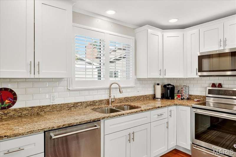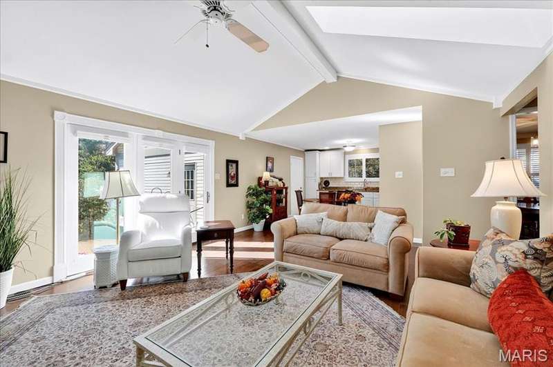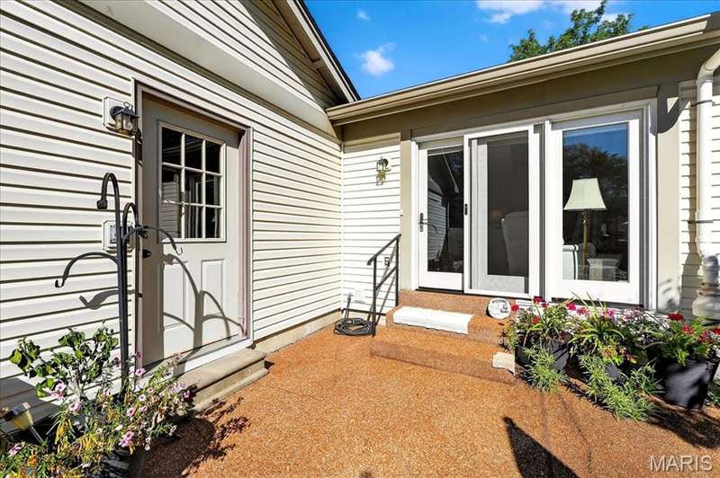 Beautifully Maintained End-Unit Villa w/2 BR, 2.5 baths & 2-car Garage. Main level offers a Formal dining rm w/wood floors, Great Rm w/s\Skylights, Fireplace & access to Private Patio, plus a Kitchen w/White Cabinets, Stainless appliances, Double Sinknk, Eat-In & has Garage Access. Bedrooms & Laundry on Main Level. Guest Room has Large Window & Closet. Spacious Primary Suite includes Bay Window, Plantation Shutters, Vaulted Ceiling, Fan, Neutral Walls & Carpet. Luxurious Bathroom w/Double Vanities, Separate Shower & Tub, both w/Glass Doors. Finished LL adds living space. The Private Patio is an Outdoor Oasis w/Aggregate Patio, Lush Landscaping, 6ft White Vinyl Privacy Fence & Driveway Access. Prime Chesterfield location near Shopping, Dining & Highways!