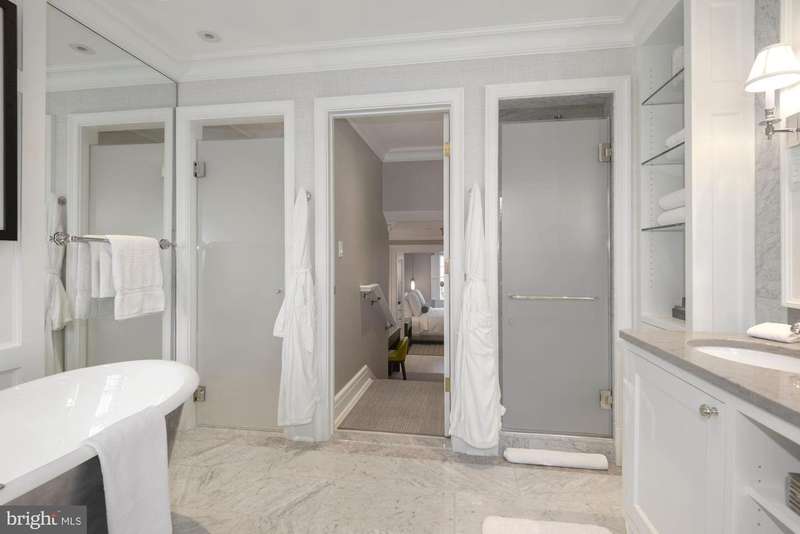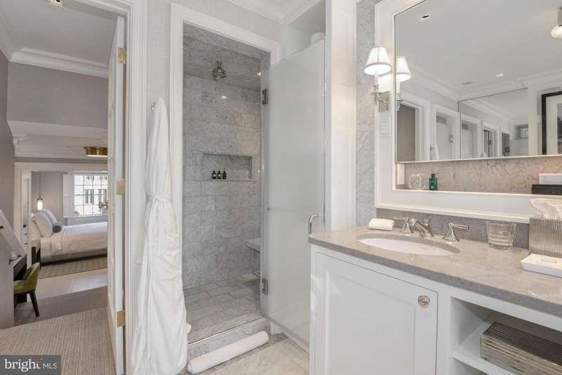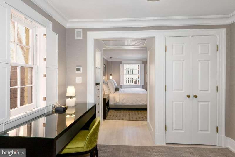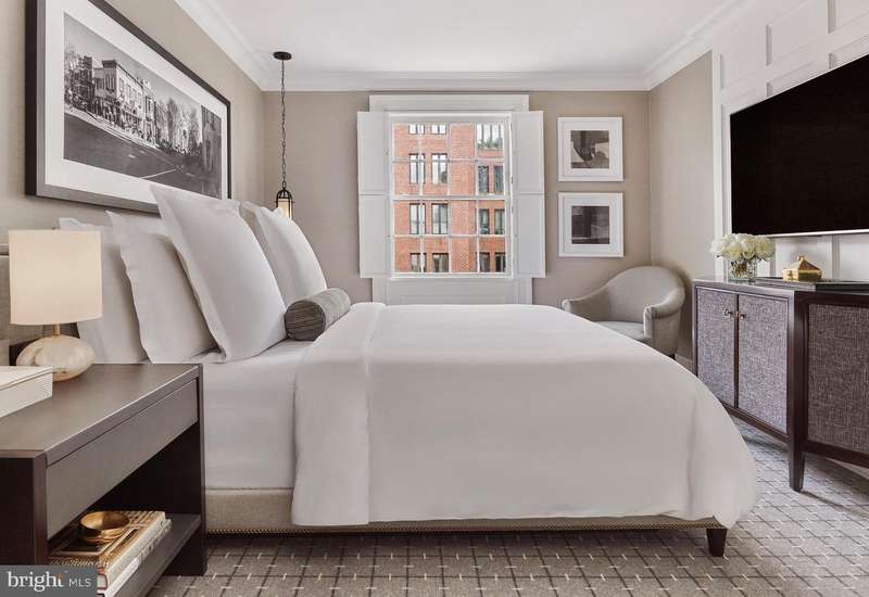 Rosewood Washington, D.C. offers an exclusive opportunity for long-term stays in its newly renovated, one-of-a-kind townhouses. This 1 B/R and 1.5 bath townhouse nestled on a picturesque, tree-lined street in the heart of Georgetown, these historic residences have been thoughtfully reimagined by renowned designer Thomas Pheasant, seamlessly blending modern elegance with timeless charm. Designed for extended stays, each townhouse provides the comforts of home with the luxury of a five-star hotel. Residents enjoy full access to Rosewood's world-class amenities, including in-room dining from CUT D.C. by Wolfgang Puck, the , high-speed Wi-Fi, an intimate fitness center, and complimentary use of Rosewood bicycles. The townhouse's main level welcomes you with a gracious living area, featuring a functioning fireplace and sophisticated, locally inspired decor. The second level boasts a fully equipped kitchen with top-of-the-line appliances by SMEG, Williams Sonoma, KitchenAid, and Nespresso, alongside a sunlit communal dining space with direct access to a private, fully furnished back patio-perfect for entertaining or quiet relaxation. Upstairs, the master bedroom offers a designer bed dressed in Rivolta Carmignani linens, a separate dressing area, and a tranquil atmosphere designed for rest and rejuvenation. The topmost level features a spa-like master bathroom, complete with a deep-soaking tub, walk-in rainforest shower, and heated marble floors. A lower level adds convenience with a separate powder room and an in-unit washer and dryer. Throughout the residence, a neutral palette of pale platinum tones is accented by spring greens and cool blues, complementing custom furnishings and a curated art collection showcasing local artists. This thoughtfully designed space merges classic residential elements with contemporary luxury, making it an ideal choice for those seeking an extended stay in Washington, D.C. Available for short and long-term leases.