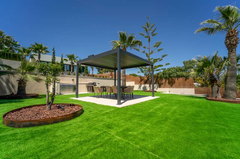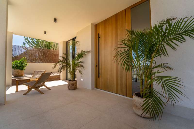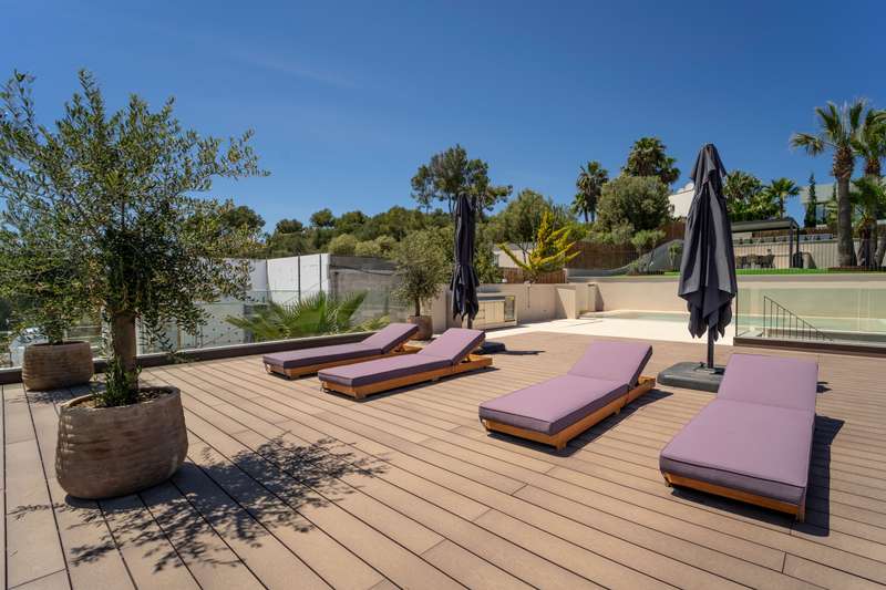 Discover this stunning newly built villa, located in an exclusive residential area of Santa Ponsa, one of the most sought-after destinations in the southwest of Mallorca. Perched above the beach, this property offers the perfect combination of tranquility, privacy, and breathtaking panoramic views of the sea and mountains. With 162 m² of living space and 150 m² of terraces, this elegant two-storey villa has been designed to embrace the Mediterranean lifestyle. Its open-concept layout seamlessly integrates a spacious living room, dining area, and a fully equipped open-plan kitchen, creating a sophisticated and inviting atmosphere. The villa features three bedrooms and three bathrooms, including a luxurious master suite. The outdoor area is a true oasis, boasting a private pool, a terrace with a lounge area, and a large semi-covered space with an outdoor kitchen and dining area, perfect for enjoying Mallorca climate all year round. Additionally, the property includes a two-car garage i