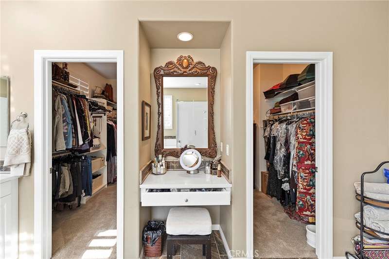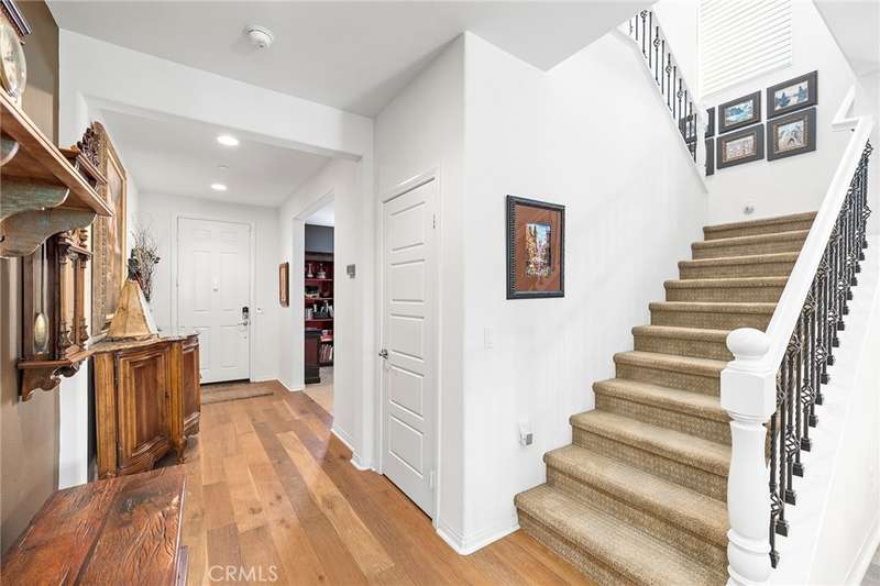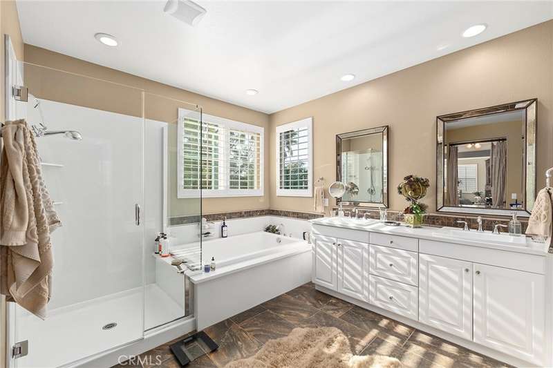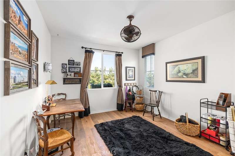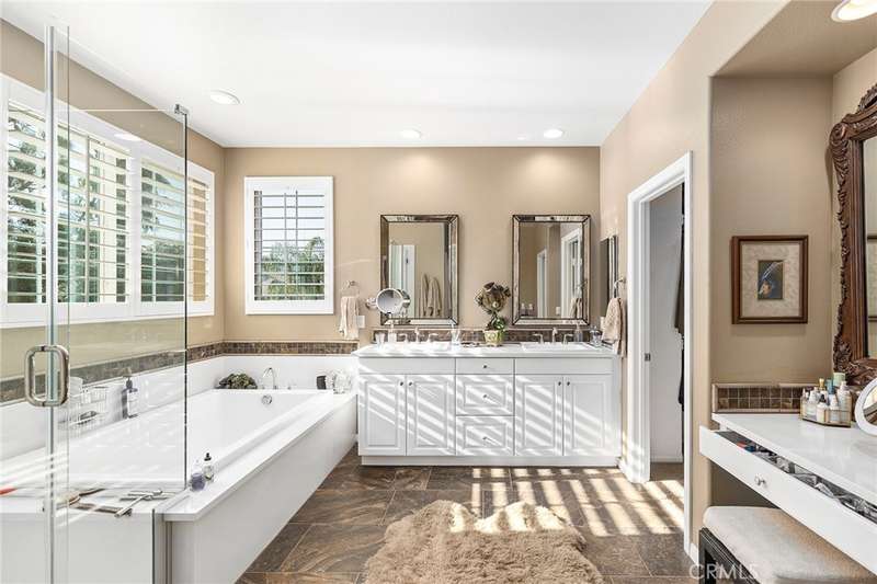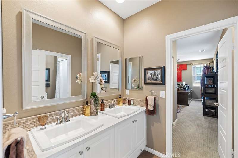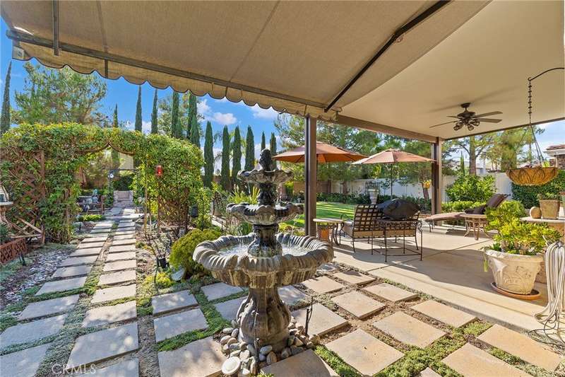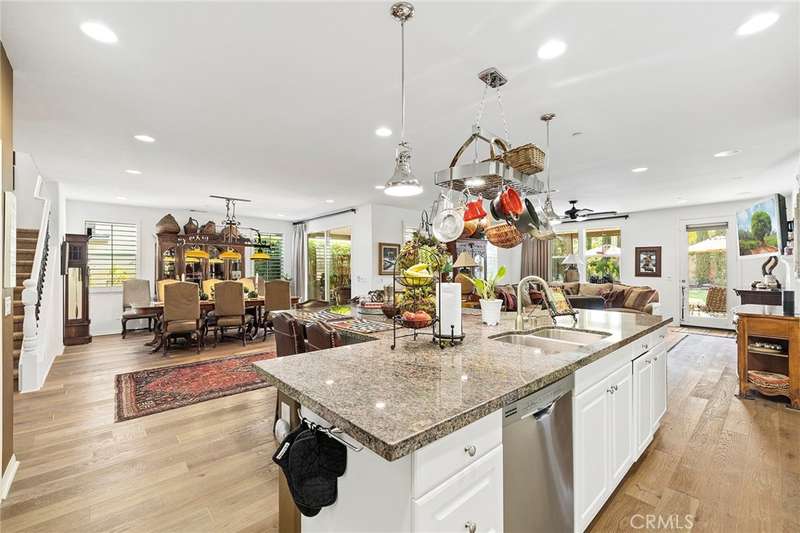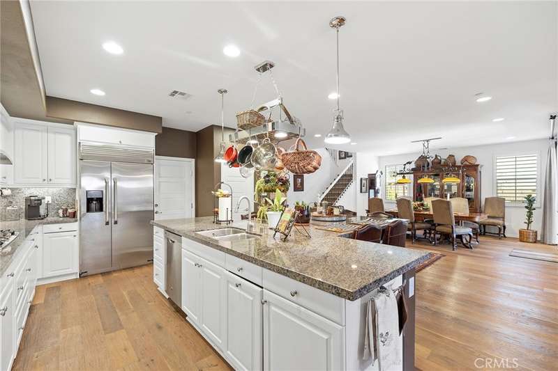 Absolutely the best in the beautiful Belle Maison community of Temecula! Located immediately adjacent to the Temecula Wine Country - this spectacular home boasts top quality upgrades and decorating in every corner, a spacious open floor plan with 5 bedrooms, 3 baths, plus office and loft, and a huge yard with two covered patios and an outdoor fireplace! The floor plan features one bedroom and full bath downstairs. There is a huge Formal Dining Room with large custom rustic chandelier, spacious open Great Room with a cozy fireplace, and Gourmet Kitchen with center island, built-in Breakfast Island attached, built-in stainless GE Monogram refrigerator and appliances, walk-in pantry, white cabinets, and more. Downstairs there is also a formal living room or office option. The stairs are lined with a wrought iron railing, and upstairs you will find a huge main suite with a large workout area/sitting room, a media room/loft at the top of the stairs, and three other bedrooms. One of the bedrooms is currently used as an office, and the office furniture is available to stay. Carpeting is absolutely the best, hardwood oak flooring and quality tile, all with a Neutral pallet, plantation shutters, custom draperies, custom lighting add to the ambiance. In the elegant backyard, you will find two covered patios, one with a fireplace, many fruit trees, flowering shrubs, cypress and pine trees, and walkways creating a private oasis. A 3-car garage with many overhead storage racks, immaculate epoxy flooring, Tesla Batteries are included, and the leased solar system provides discounted electric costs. All Televisions are included, and some of the furnishings such as the desk in the office could be available.