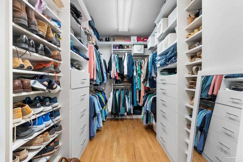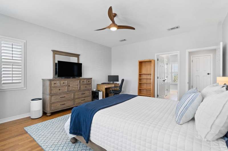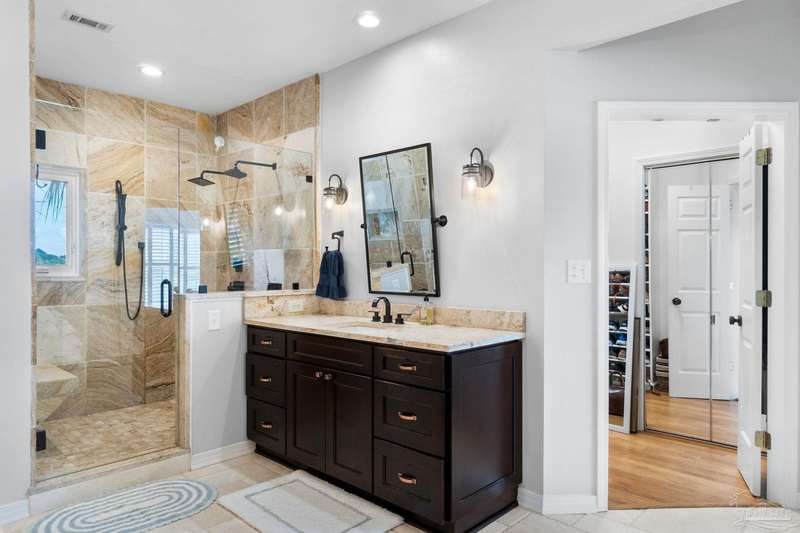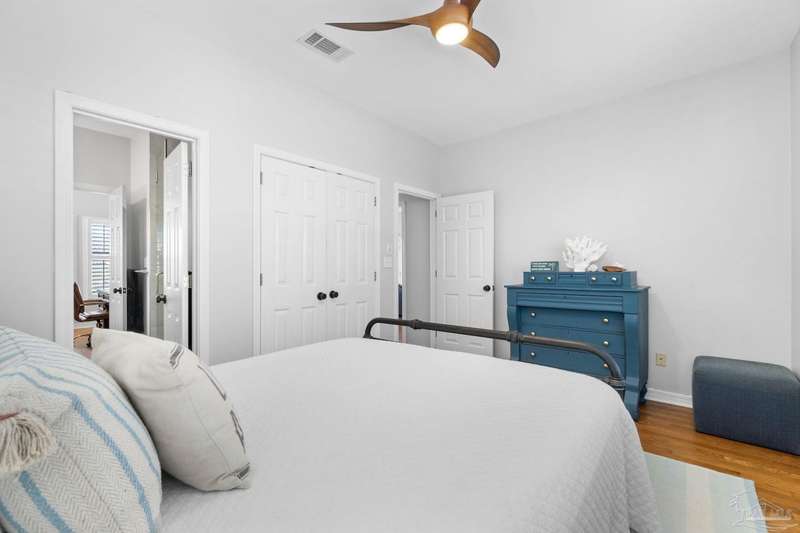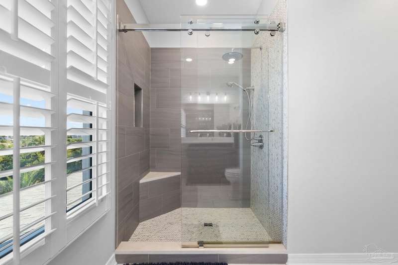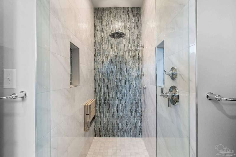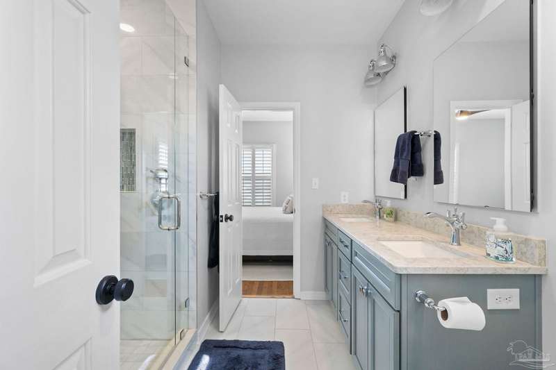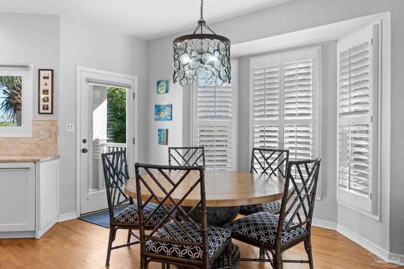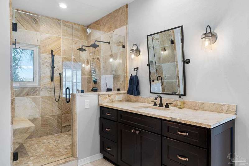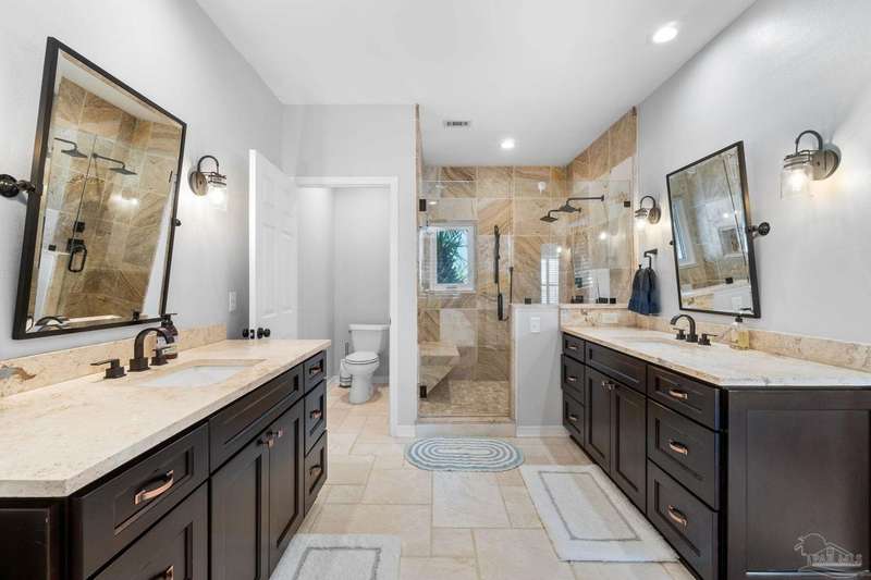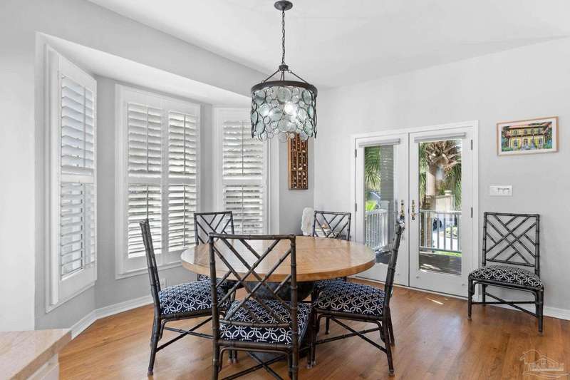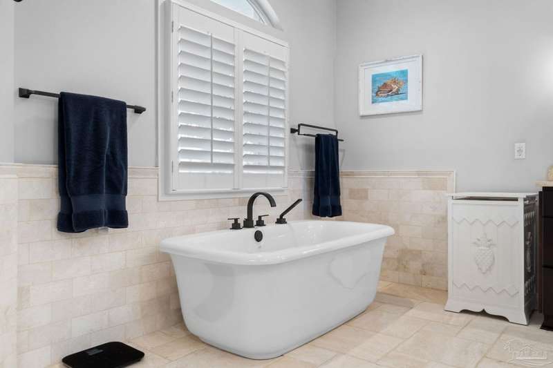 Experience the pinnacle of coastal living at 25 Calle Hermosa, a stunning stucco residence perfectly situated on Pensacola Beach. Inside, rich hardwood floors flow throughout the meticulously renovated interiors, creating a warm and sophisticated ambiance. The gourmet kitchen is a culinary masterpiece, featuring top-of-the-line Sub-Zero and Wolf appliances, custom-crafted cabinetry, and expansive countertops designed for both everyday meals and entertaining. The primary bedroom is a serene retreat, complete with a private balcony offering Gulf views, ideal for savoring morning sunrises or tranquil sunsets over the sparkling waters. The fully updated bathrooms exude spa-inspired elegance with contemporary fixtures and premium materials. A graceful winding staircase leads to an inviting upstairs sitting area with balcony, perfect for relaxation, and three additional well-appointed bedrooms. Outside, the backyard is a private paradise, centered around a shimmering gunite pool and spa, surrounded by pavers that guide you to a charming fire pit area-perfect for hosting gatherings or enjoying tranquil evenings under the stars. This exquisite home boasts an oversized garage, ideal for vehicles, beach gear, or a workshop for seaside hobbies. With exclusive neighborhood Gulf access just steps away and the vibrant Pensacola Beach restaurants just minutes away, this home seamlessly blends modern luxury with coastal serenity, making it a rare gem for discerning buyers.