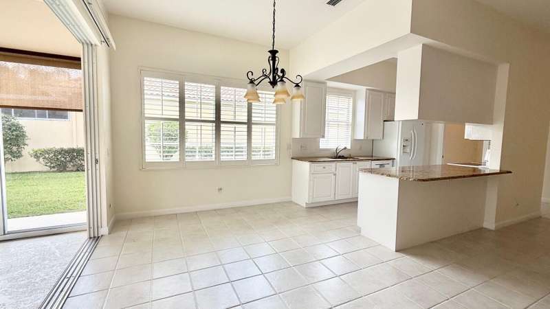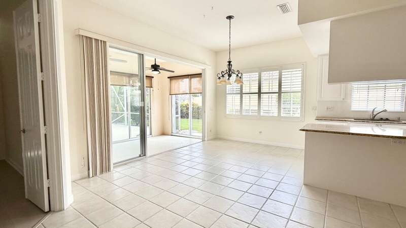 Meticulously maintained 3-bedroom, 2-bath single-family home featuring an open floor plan with 10 ft ceilings and abundant natural light. The spacious glass-enclosed lanai and large screened patio overlook a serene lake, perfect for relaxing or entertaining. Main living areas are tiled, with brand-new luxury vinyl flooring in all bedrooms. The kitchen offers granite countertops and ample storage. Additional highlights include an extra-wide side lot, laundry room with utility tub, accordion storm shutters, central vacuum, and alarm system. Major updates include a new AC (2020) and hot water heater (2021). A move-in ready home with both comfort and peace of mind.