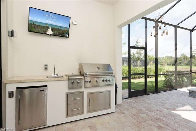 This fabulous home features 3 bedrooms, 2 full Bathrooms, 2 car garage and open floor plan. Relax in your heated pool/spa overlooking a lake and preserve and enjoy cooking out with built-in grill. Open kitchen offers ample cabinetry, large island, stainless steel appliances, natural gas stove and breakfast nook/dining area which all opens to living area with sectional sofa and large screen TV. Master suite includes a king bed, TV, walk-in shower, his & her vanity and walk in closet. Guest bedrooms include queen beds and TV’s in each room which share the guest bathroom. Home also has laundry room, WIFI, and TV streaming. Greyhawk tenants enjoy luxurious amenities including: clubhouse, restaurant, resort pool/spa, fire pit, fitness center, bocce, pickle ball, tennis & more! Conveniently located in North Naples, enjoy upscale shopping and dining at nearby Founders Square. Unwind at the renowned beaches only minutes away. This is the place to live like you're on vacation.